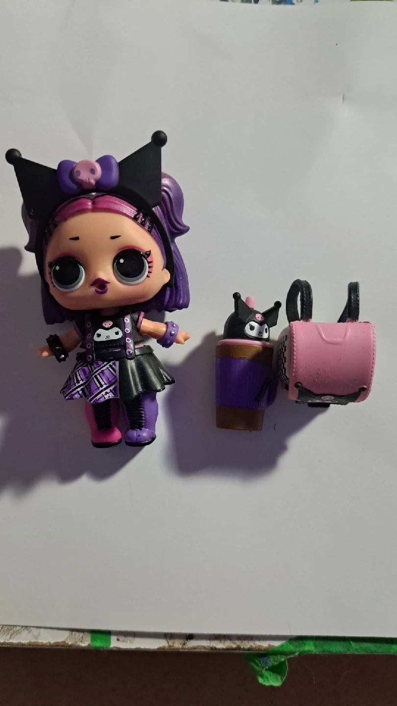 15Selling a LOL Surprise Loves Kuromi doll! This adorable doll features a unique Kuromi-inspired design with purple and black accents. Perfect for collectors or kids who love LOL Surprise and Sanrio characters! Dose not include check list or stickers.
