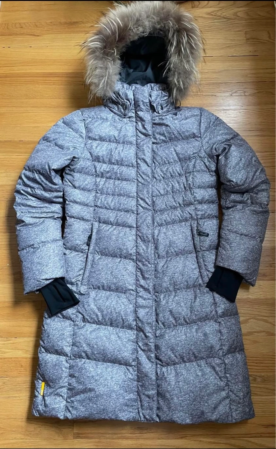 Lole brand, In brand new condition, 3/4 in length, Has Thumb holes to keep hands warm, This coat is ideal for -25, Detachable real fur hood, This winter coat has a flattering fit. Size: Medium * PICK UP ONLY*