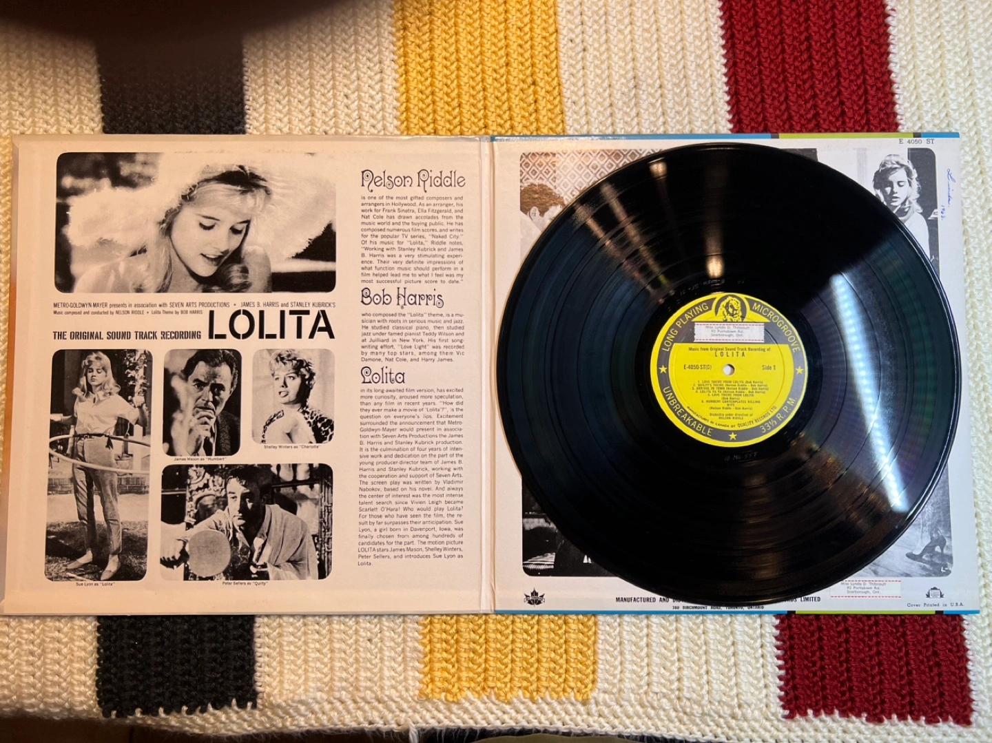 13Vintage vinyl record. Original soundtrack recording of the film Lolita. Features music composed and conducted by Nelson Riddle. Mint condition.