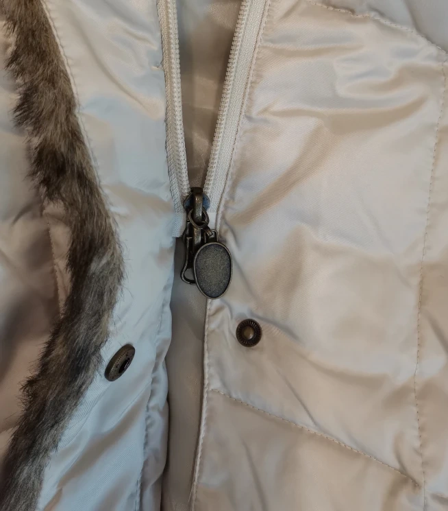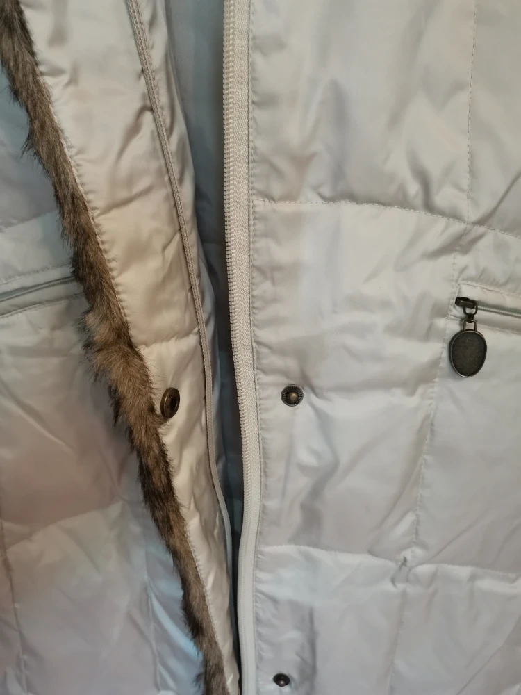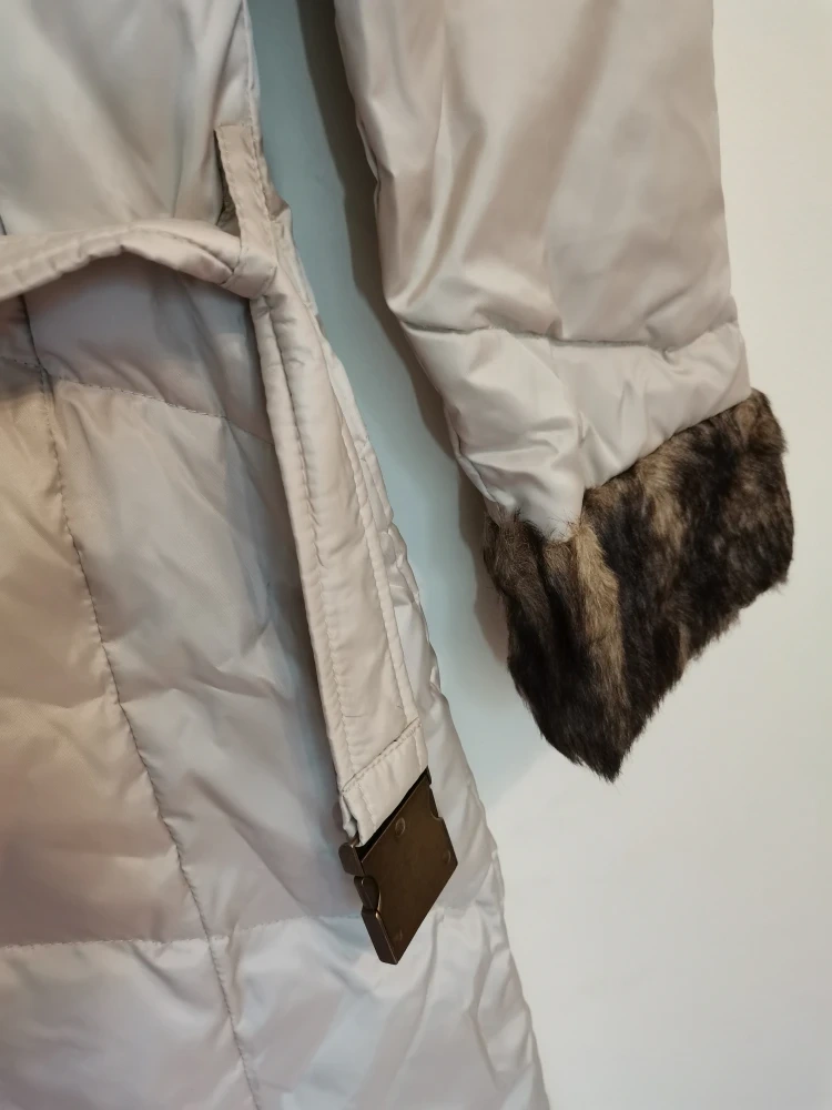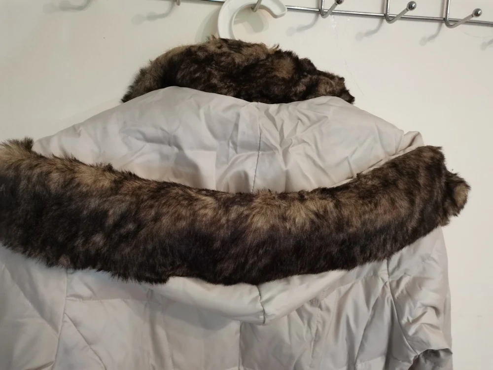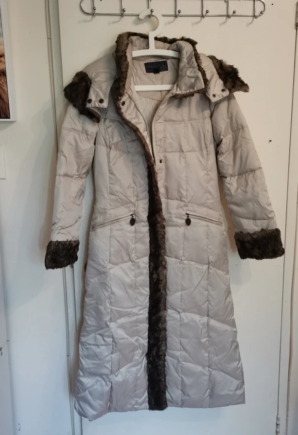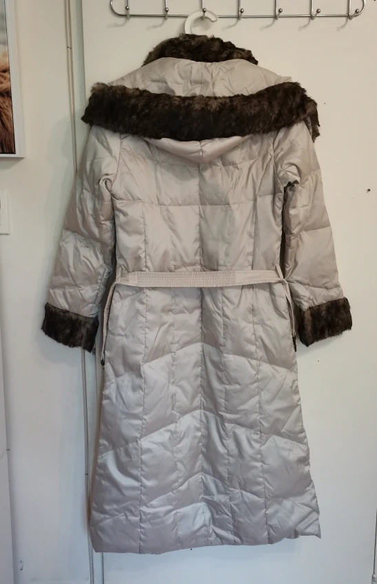 Never worn Longer length down coat with a faux fur trim. Zipper closure and button accents 50%Down and 50%feather Size XS