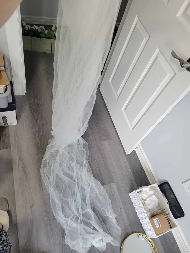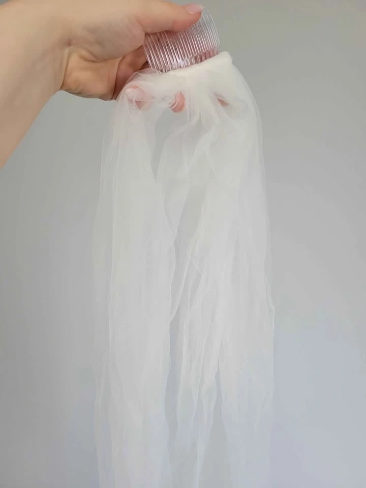 Floor-length ivory tulle veil. Attached comb. Elegant and romantic bridal accessory. Perfect for a classic wedding look. NEVER used - forgot on wedding day - originally paid $120 + tax from a small business in Ottawa