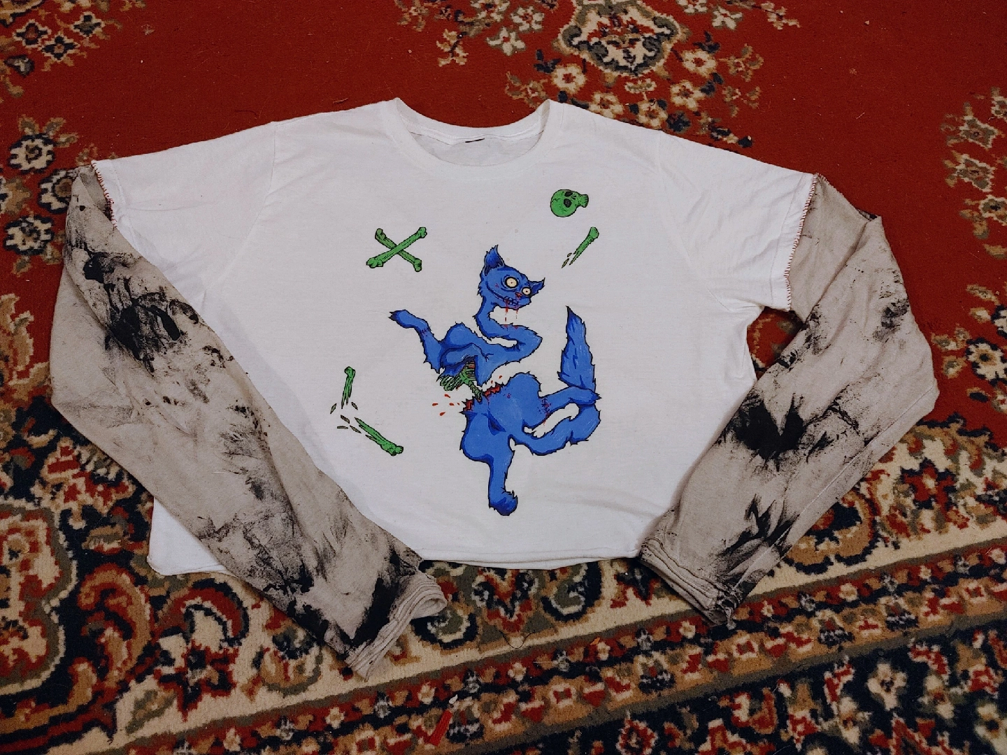 15medium/fitted large. hand painted and some hand stitching. perfect for the little emo kid thats in all of us xP
