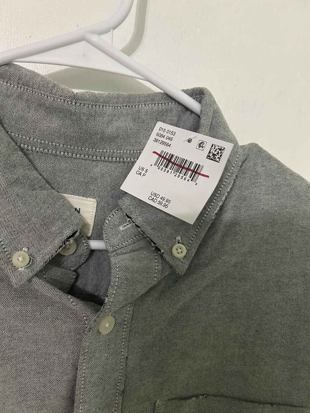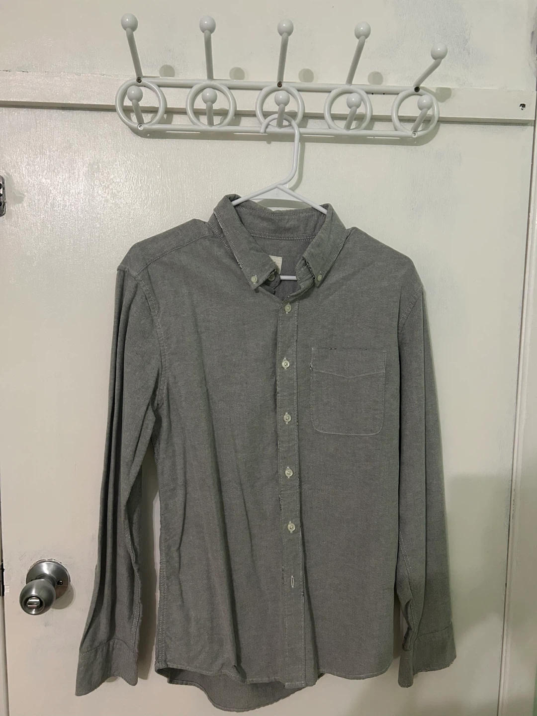 Here's a gently used Everlane Oxford shirt in size small. It's a nice grey colour and in great shape. The original price was CAD $59.95
