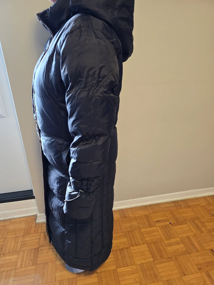 121Selling a long, black winter coat. It's in great condition and perfect for the cold weather! It has a hood and is a very warm puffer style coat