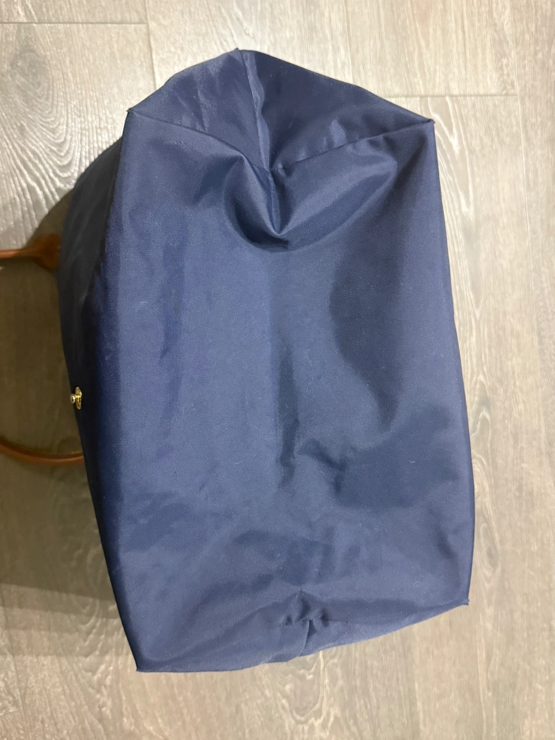 526Longchamp Le Pliage tote bag - size Medium - in a beautiful navy blue colour. It's in great condition and perfect for everyday use. The bag features the signature Longchamp leather flap and handles. Good condition - signs of wear are shown Dimensions : 47 cm (L - measured at the base of the bag) x 27,cm (H) x 21cm (W) New retails for $200+