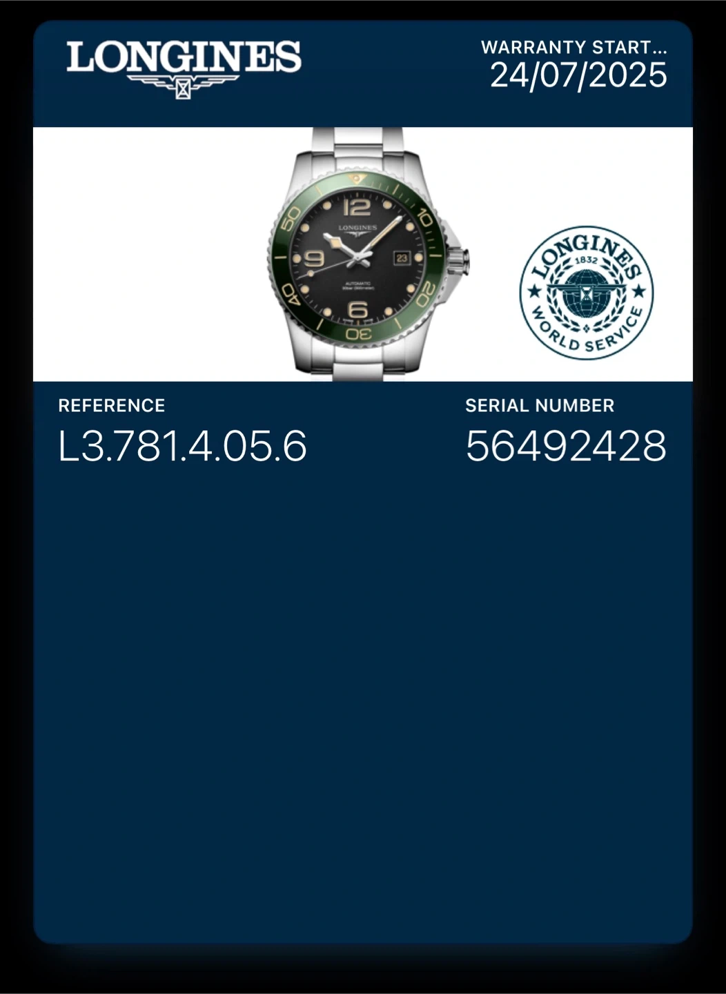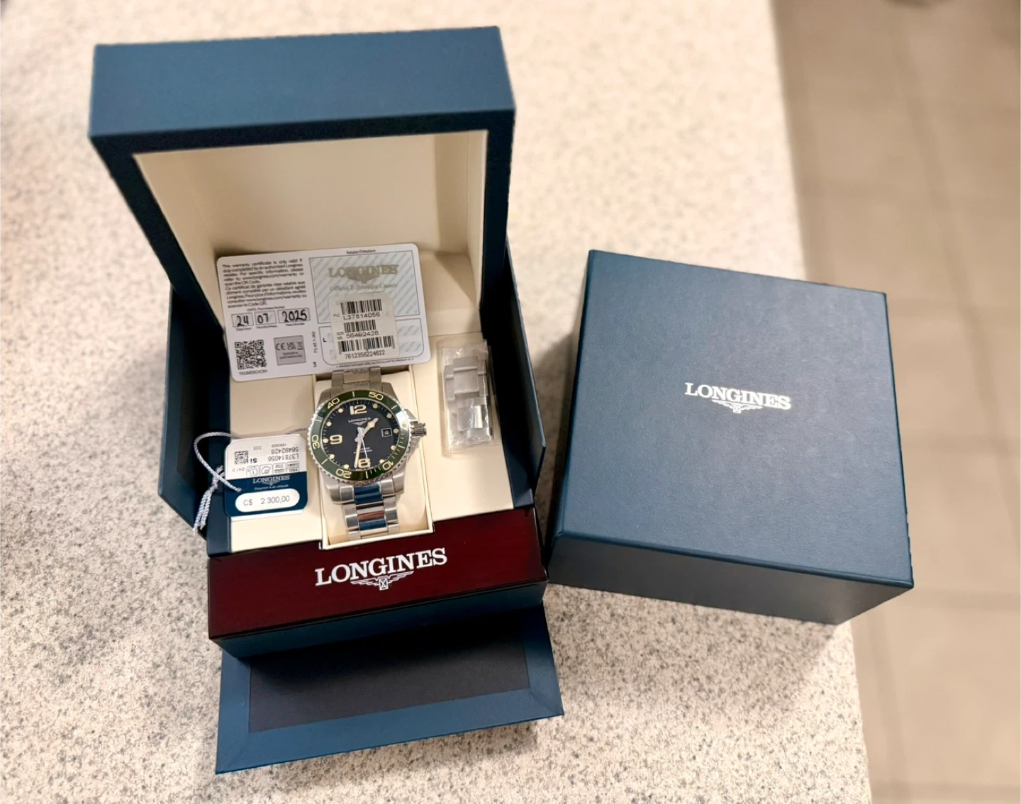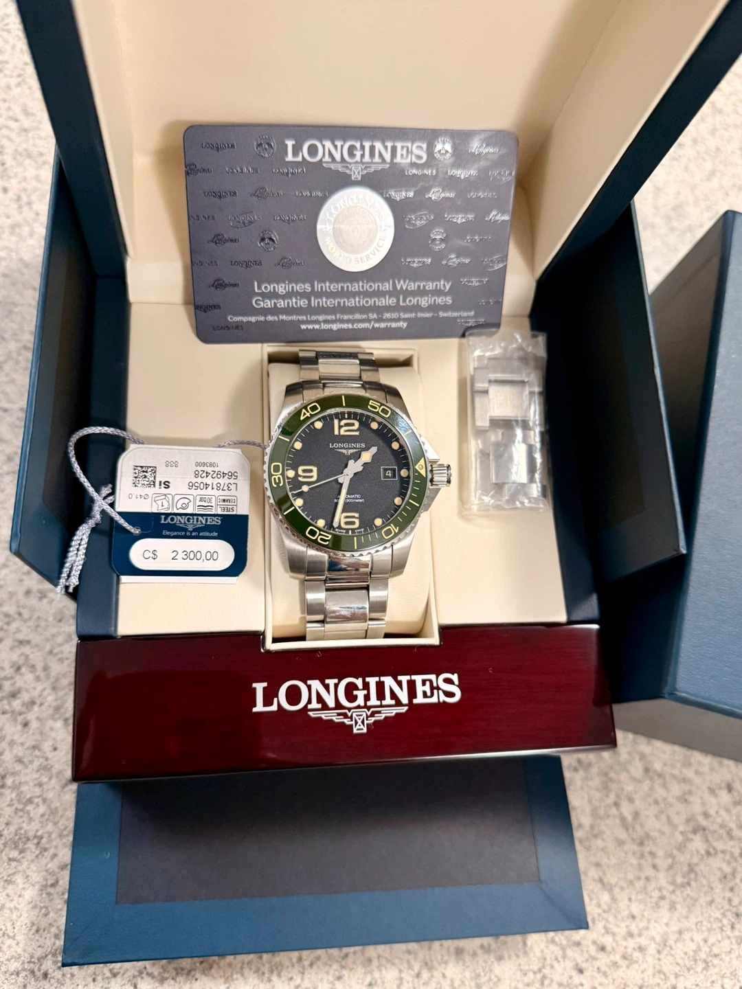 769Reference: L3.781.4.05.6. Serial number: 56492428. Selling my incredible stylish and elegant LONGINES HydroConquest 41 mm with a ceramic bezel. Purchased on July 23, 2025, $2.6k. In perfect condition, full set included. A stunning timepiece that combines prestige, precision, and a sporty character. https://www.longines.com/en-ca/p/watch-hydroconquest-l3-781-4-05-6 Serious inquiries only.