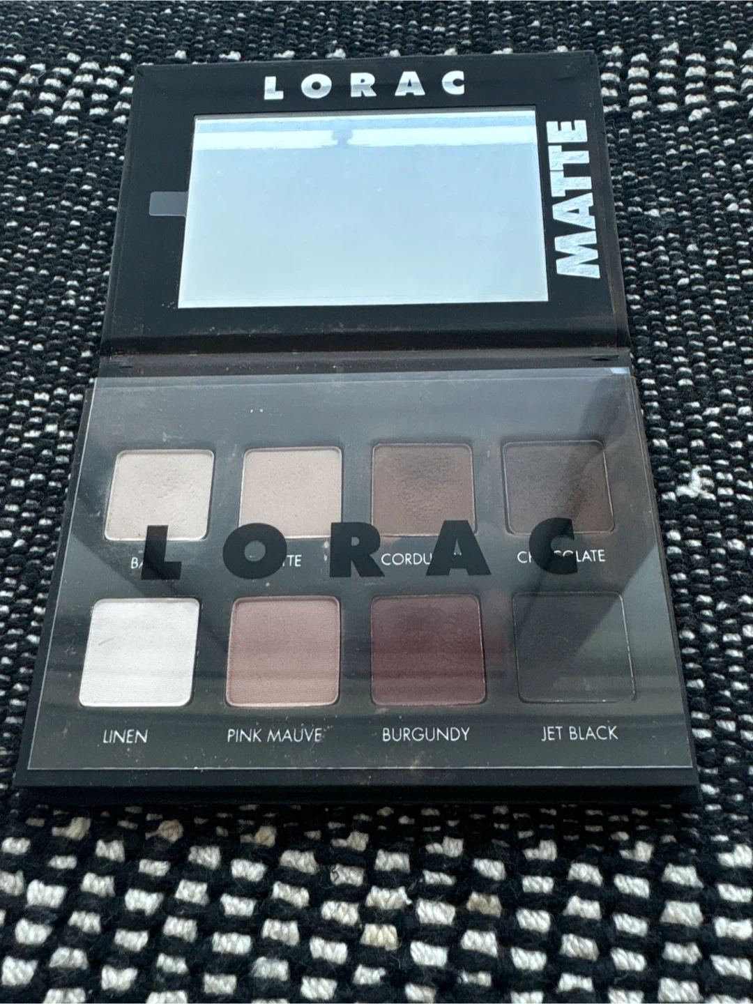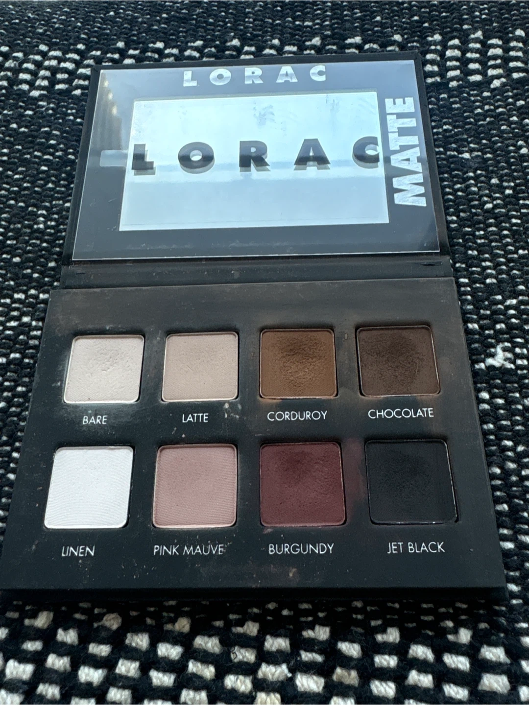 Selling a Lorac Pro Matte eyeshadow palette! It features a range of neutral and dark matte shades, including Bare, Latte, Corduroy, Chocolate, Linen, Pink Mauve, Burgundy, and Jet Black. Perfect for creating a variety of eye looks! Made in the US.