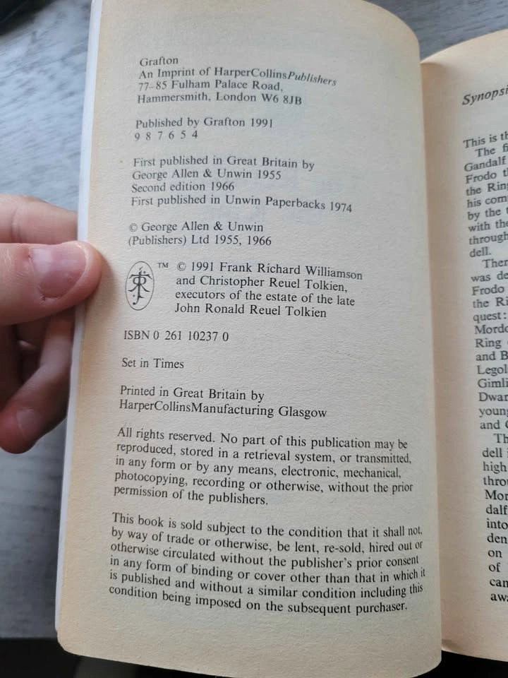 Book 3 of the LOTR trilogy. 1991 edition published by Grafton. Art by John Howe. No rips, tears or missing pages.