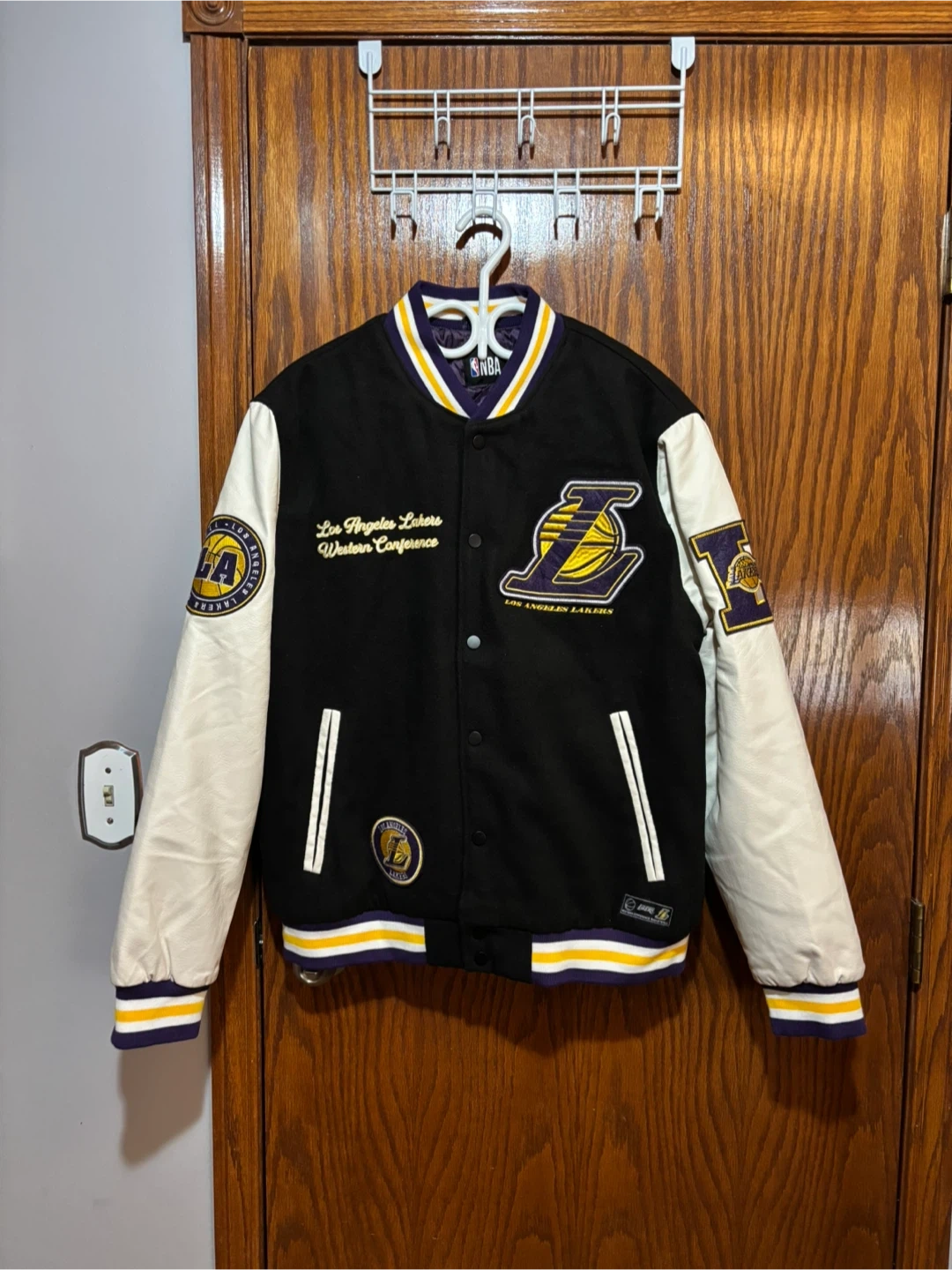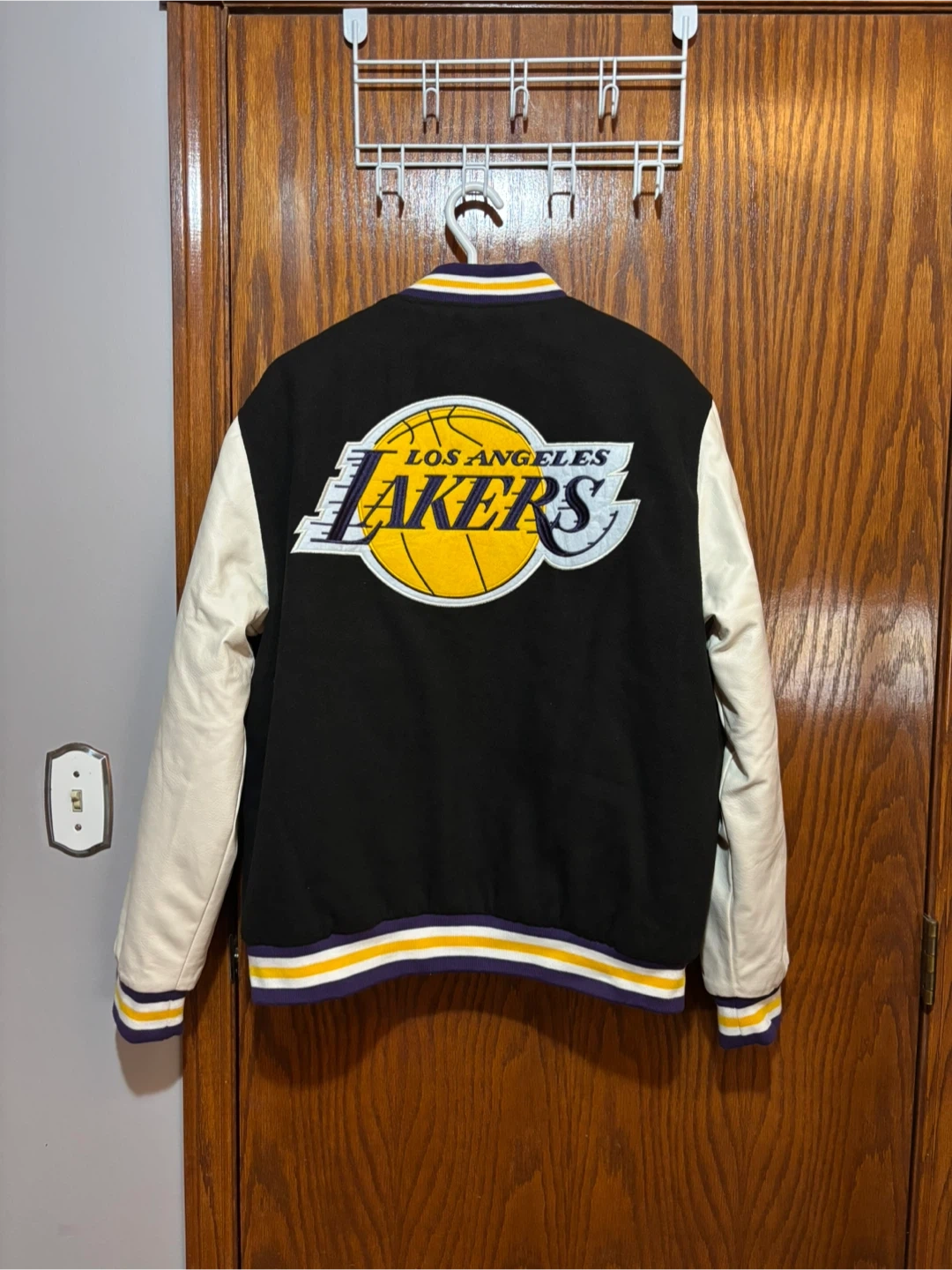 28For Sale: Leather Wool NBA ‘Los Angeles Lakers’ Varsity Jacket See pictures for the details Message for any questions Size large on tag Best fit to M-L Brand New Perfect for fall & winter weather Rfs: Moving to different city Pick up - Millbourne / Woodvale “Hillview Crescent Park” - Near Millwoods Town Center