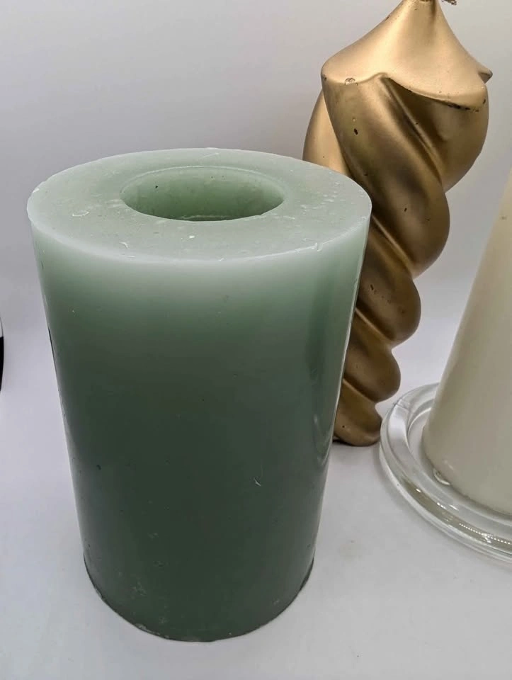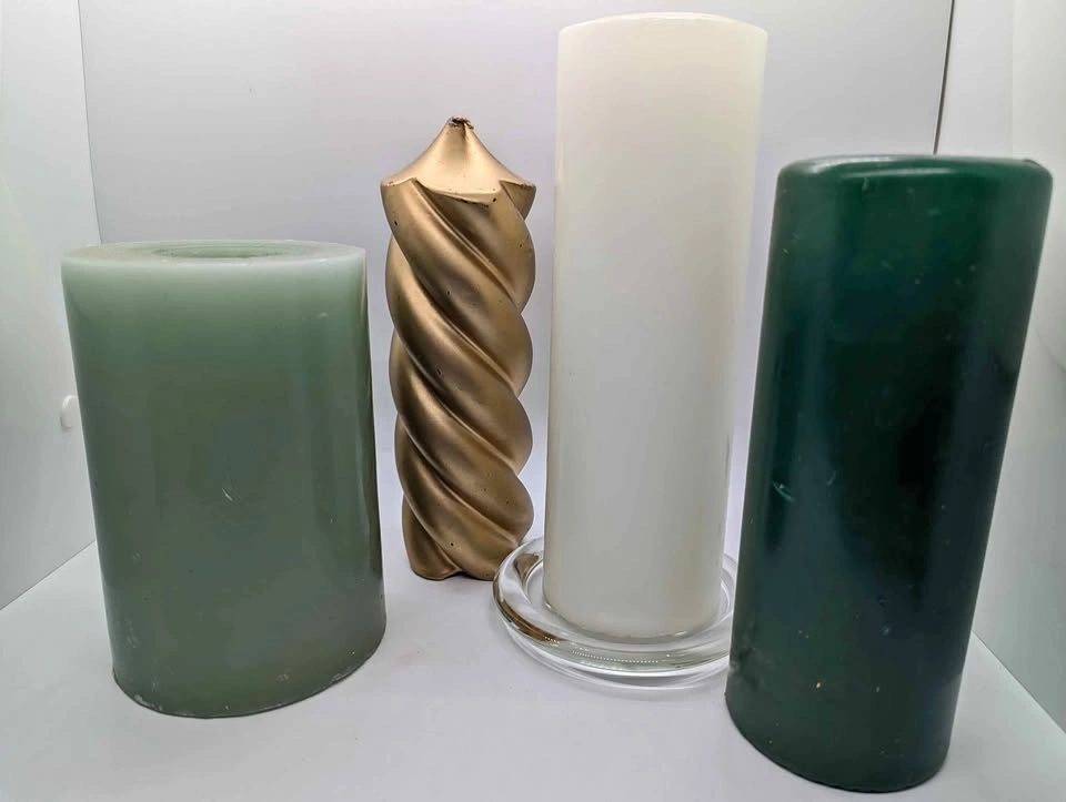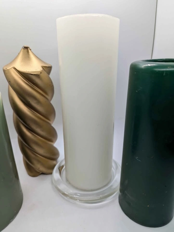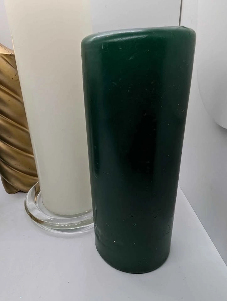 10Used tall pillar candles - lot of 4 One glass candle stand