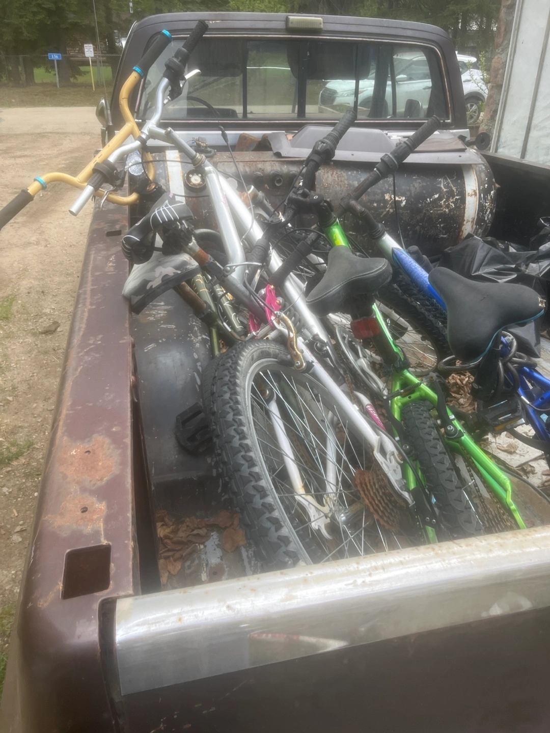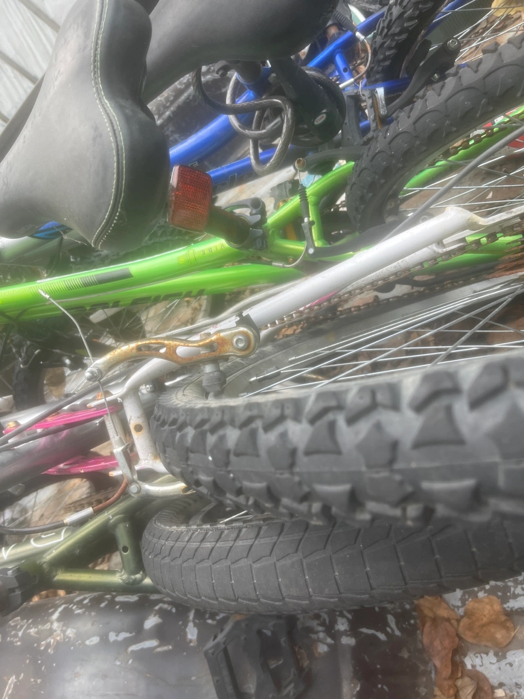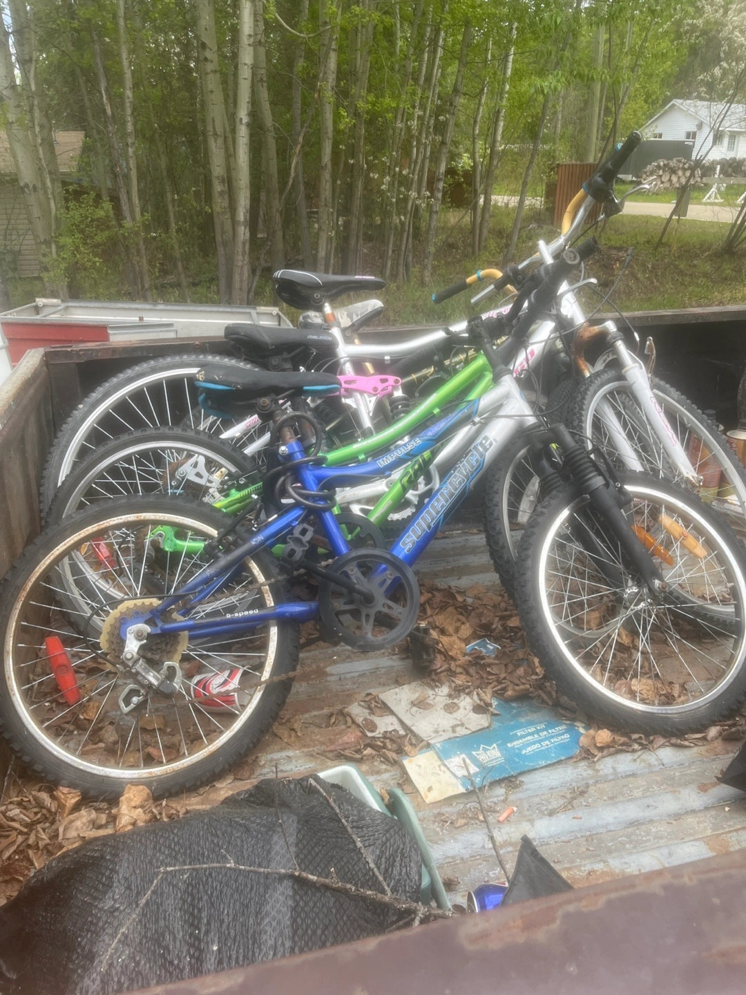 21Several used bicycles, various colours and sizes. Sold as is. Great for parts or restoration projects. Some show wear and tear. Check images for details. There is a bmx with a popped tire, 3 mountain bikes and there is a bike lock on one that I don’t have the key for. That all work by have slight problems
