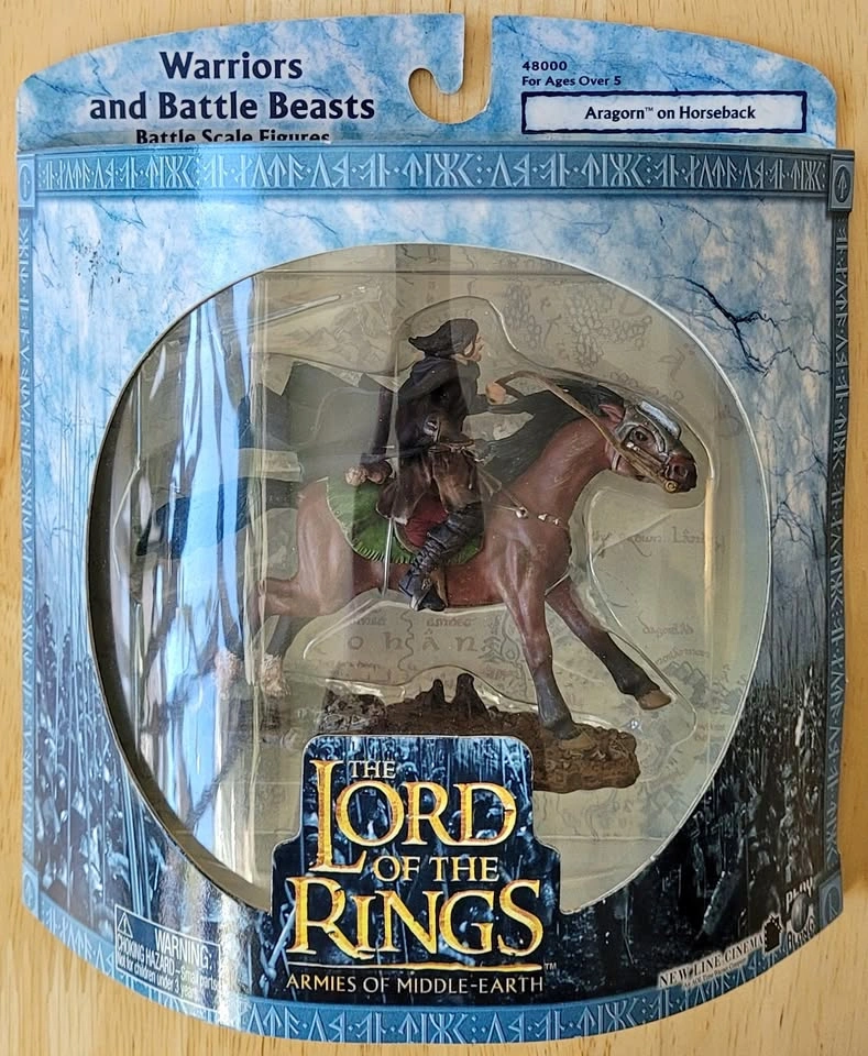 Lord of the Rings Warriors and Battle Beasts, Battle Scale Figures Aragorn on Horseback. In excellent condition, some wear on packaging, see photos. Message if you have additional questions. For pickup near Talbot and Albert in London.