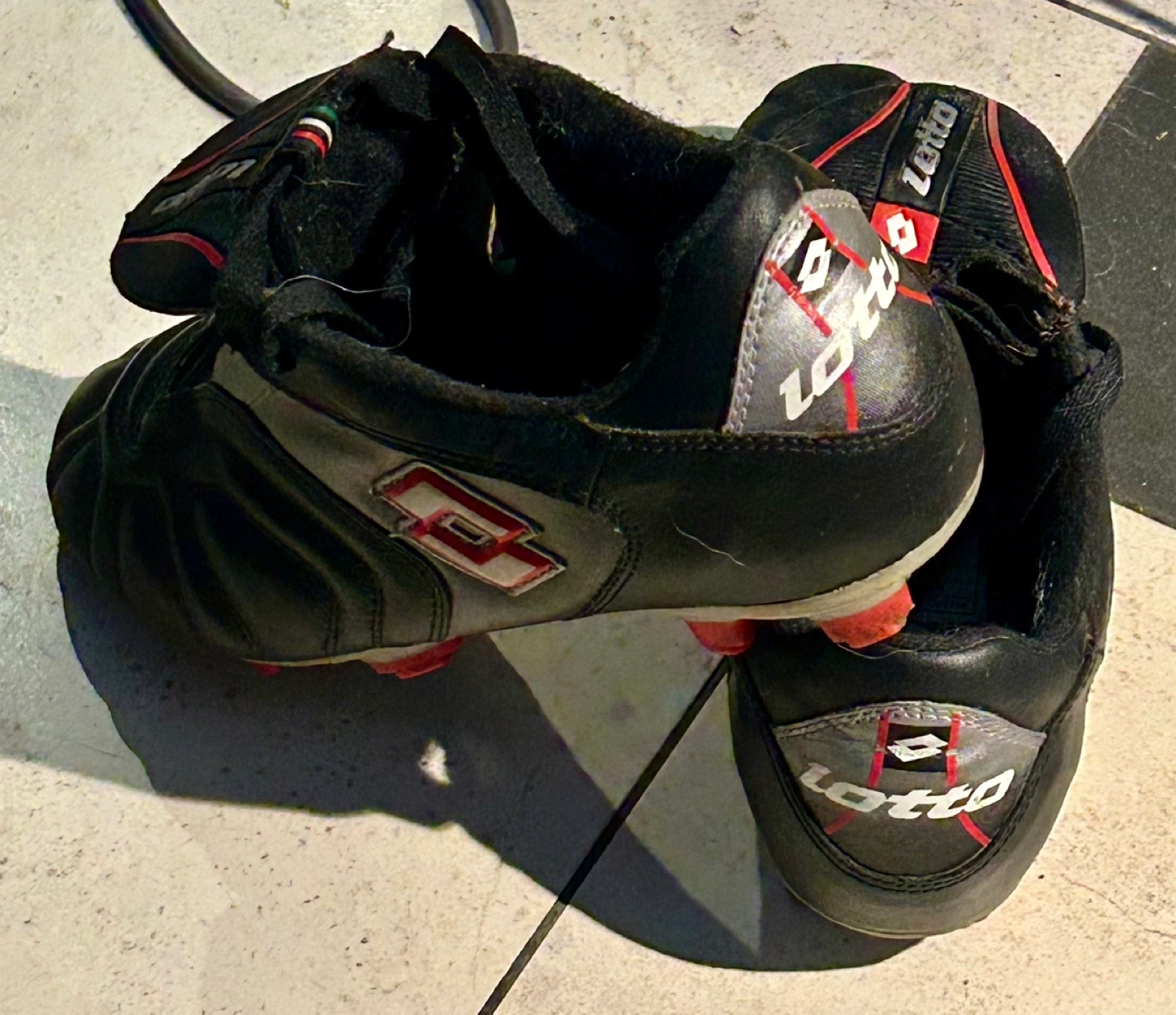 160Black soccer cleats with red and silver accents. Size 36.5. Hardly used. Moving sale. See my other items. Pick up in Rundle, NE Calgary. If listed it is still available!