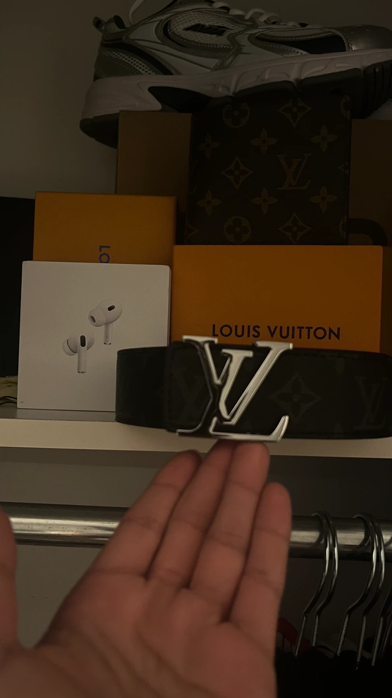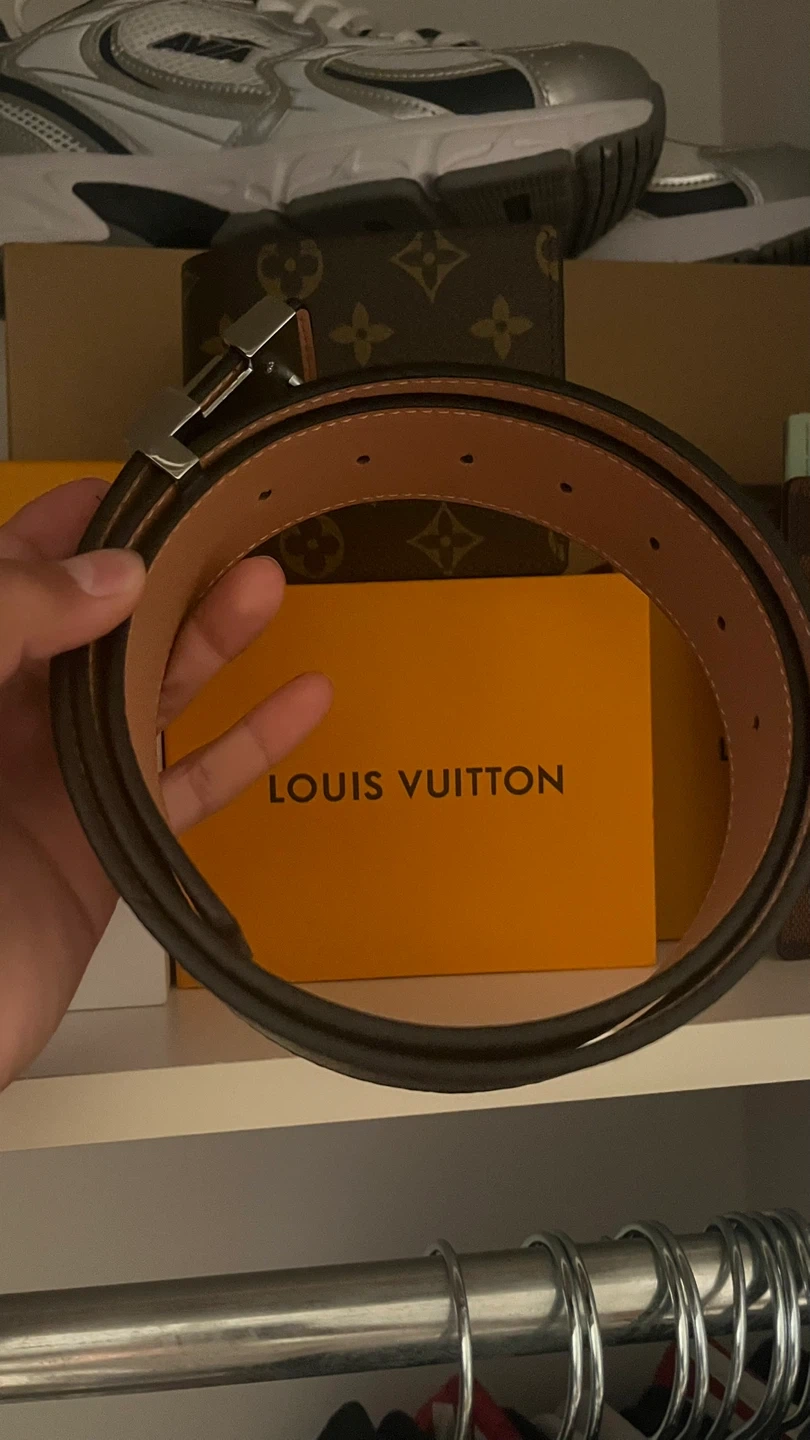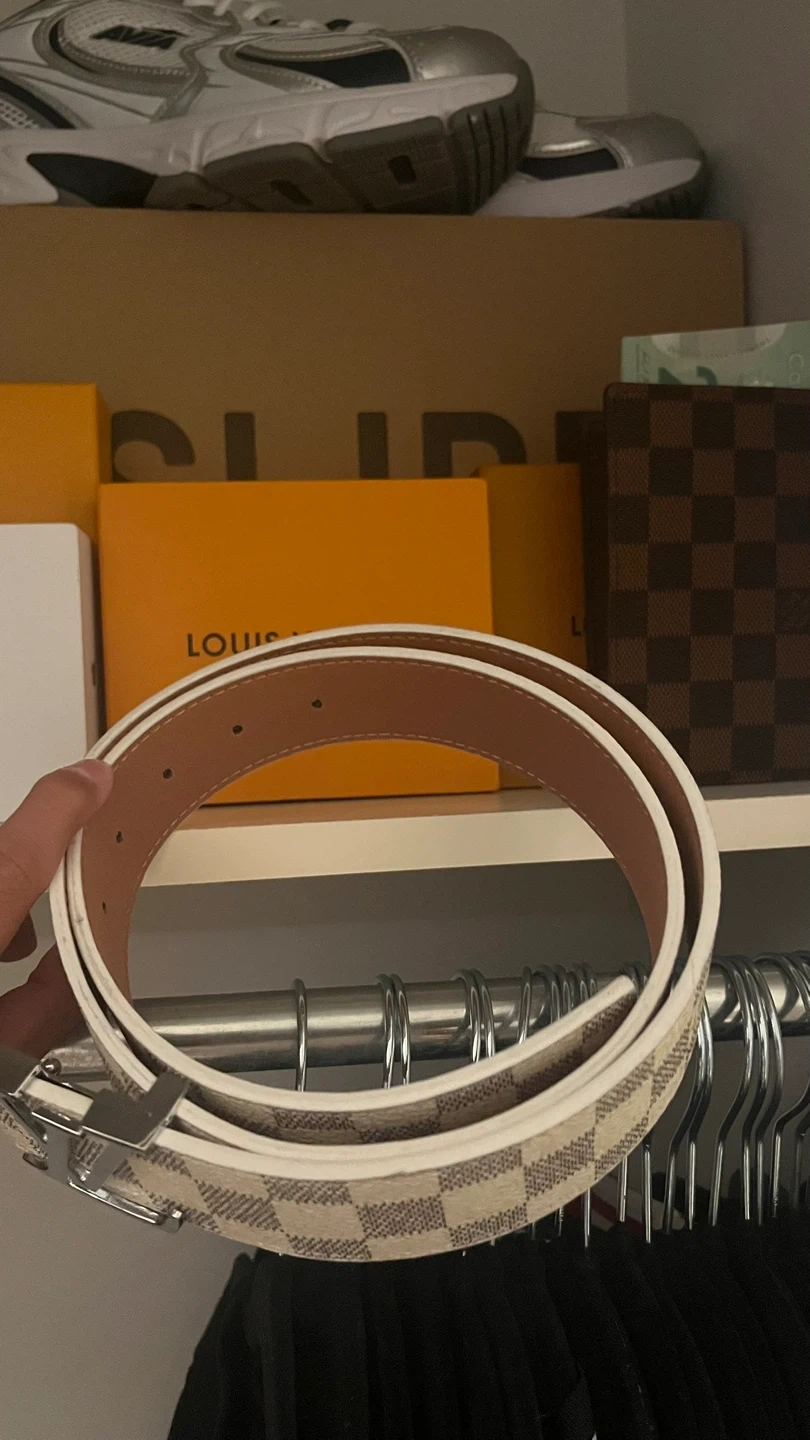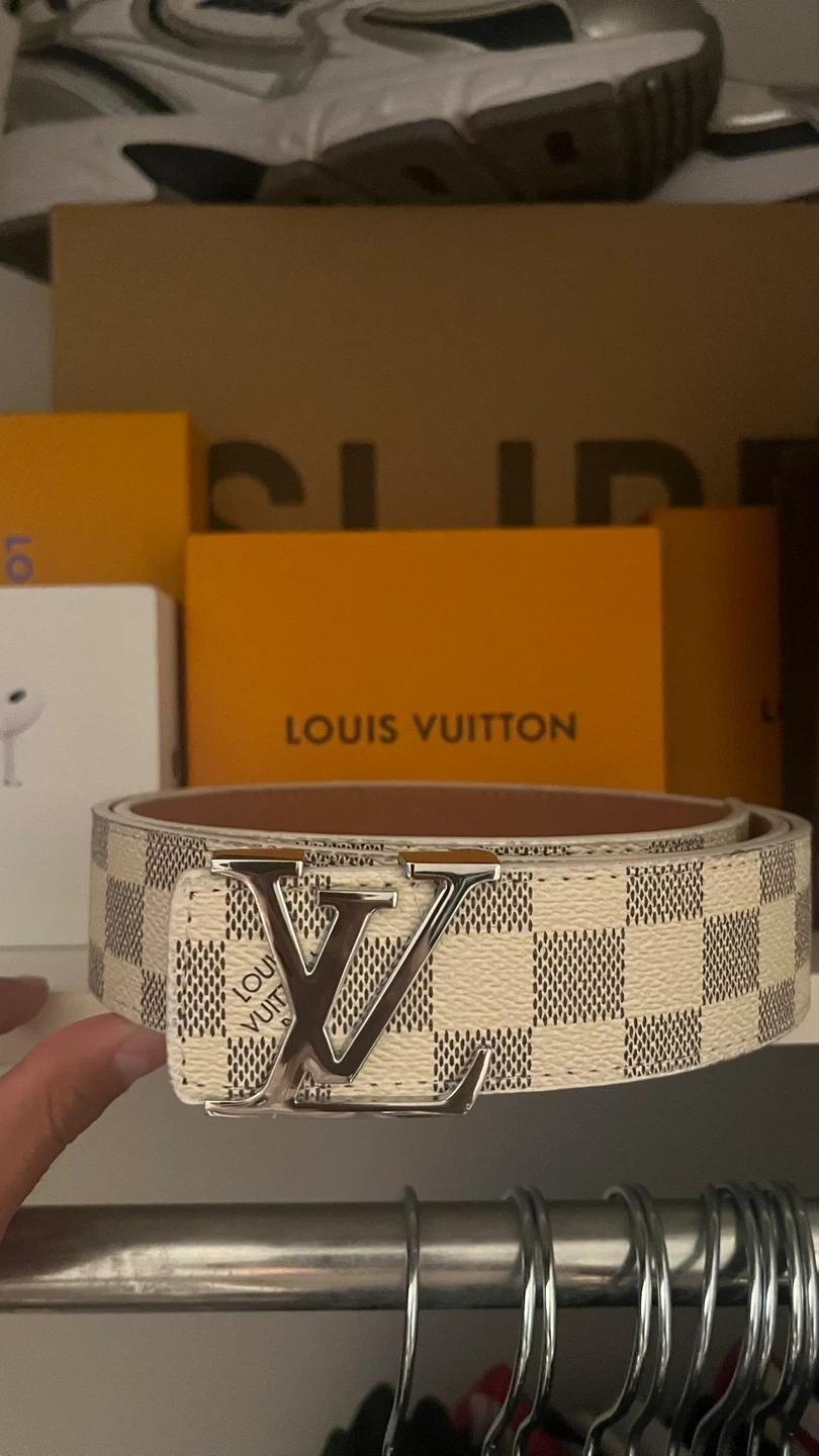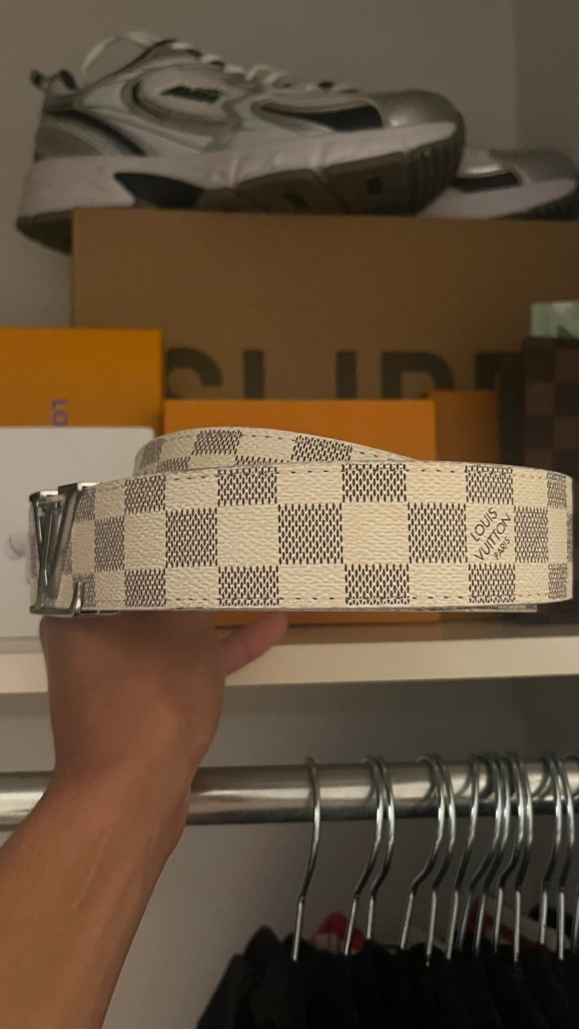Selling a Louis Vuitton belt in good condition. It features the iconic LV logo as the buckle. Available in two patterns: Damier Ebene (brown) and Damier Azur (white). 50 each