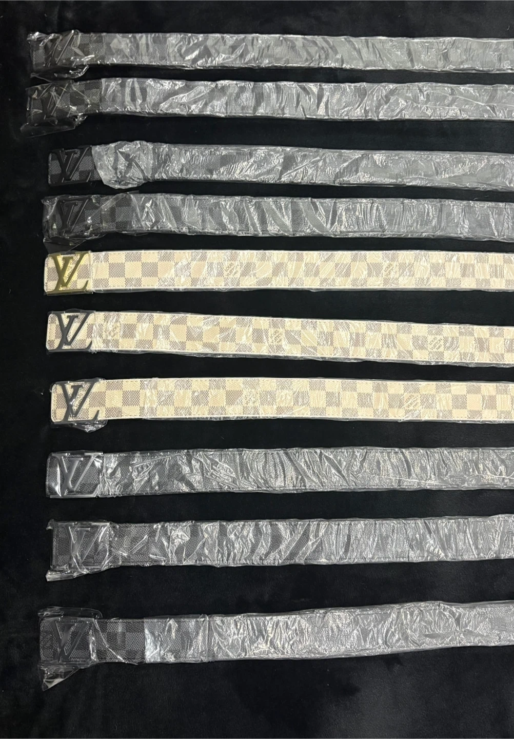 Selling Louis Vuitton belts. It is in new condition and still in the packaging. The belt features the classic LV logo and a checkered pattern. A stylish accessory to elevate any outfit