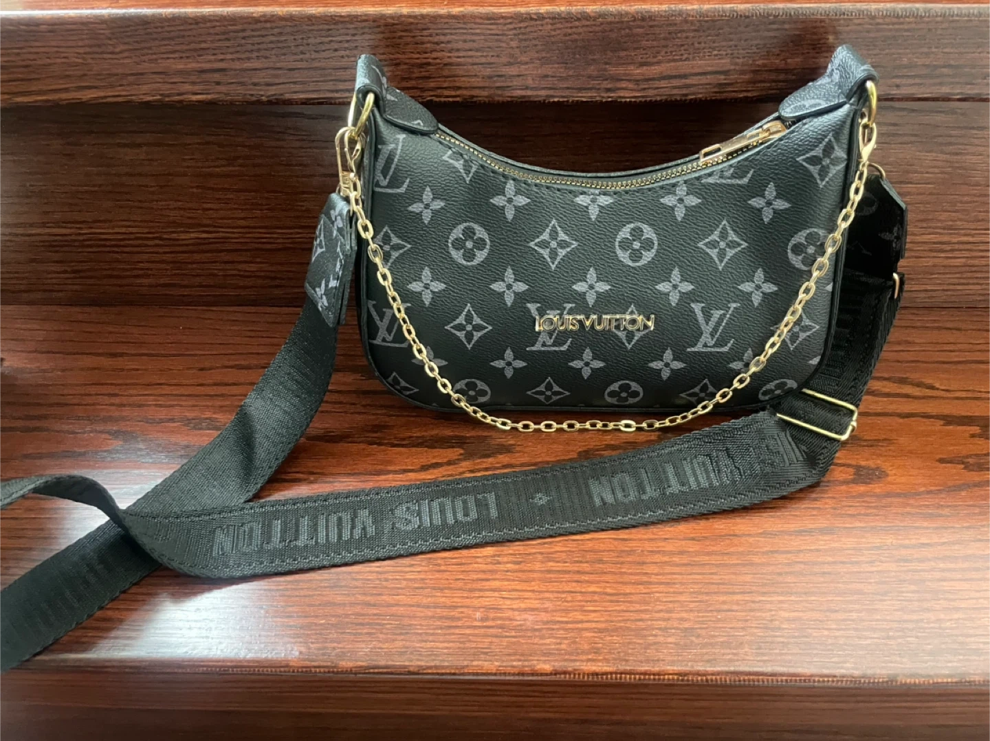 10Selling a stylish Louis Vuitton shoulder bag in black leather. It features the classic monogram pattern and a gold-tone chain detail. Perfect for adding a touch of luxury to any outfit! No holds.