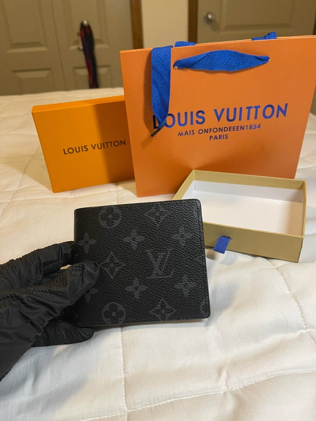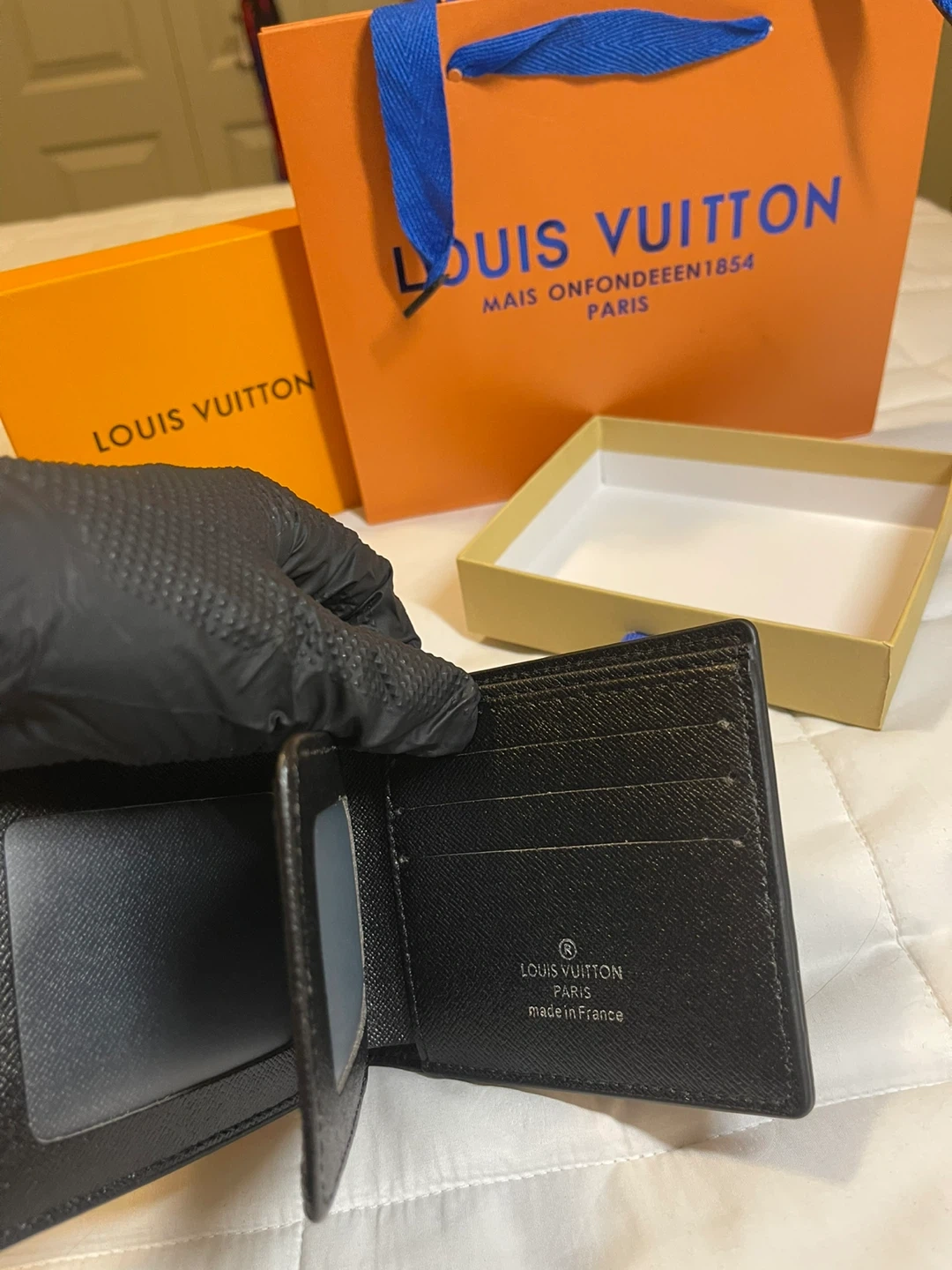 10Selling a Louis Vuitton wallet in black! It comes with the original box and packaging. The wallet is in great condition and ready for a new home