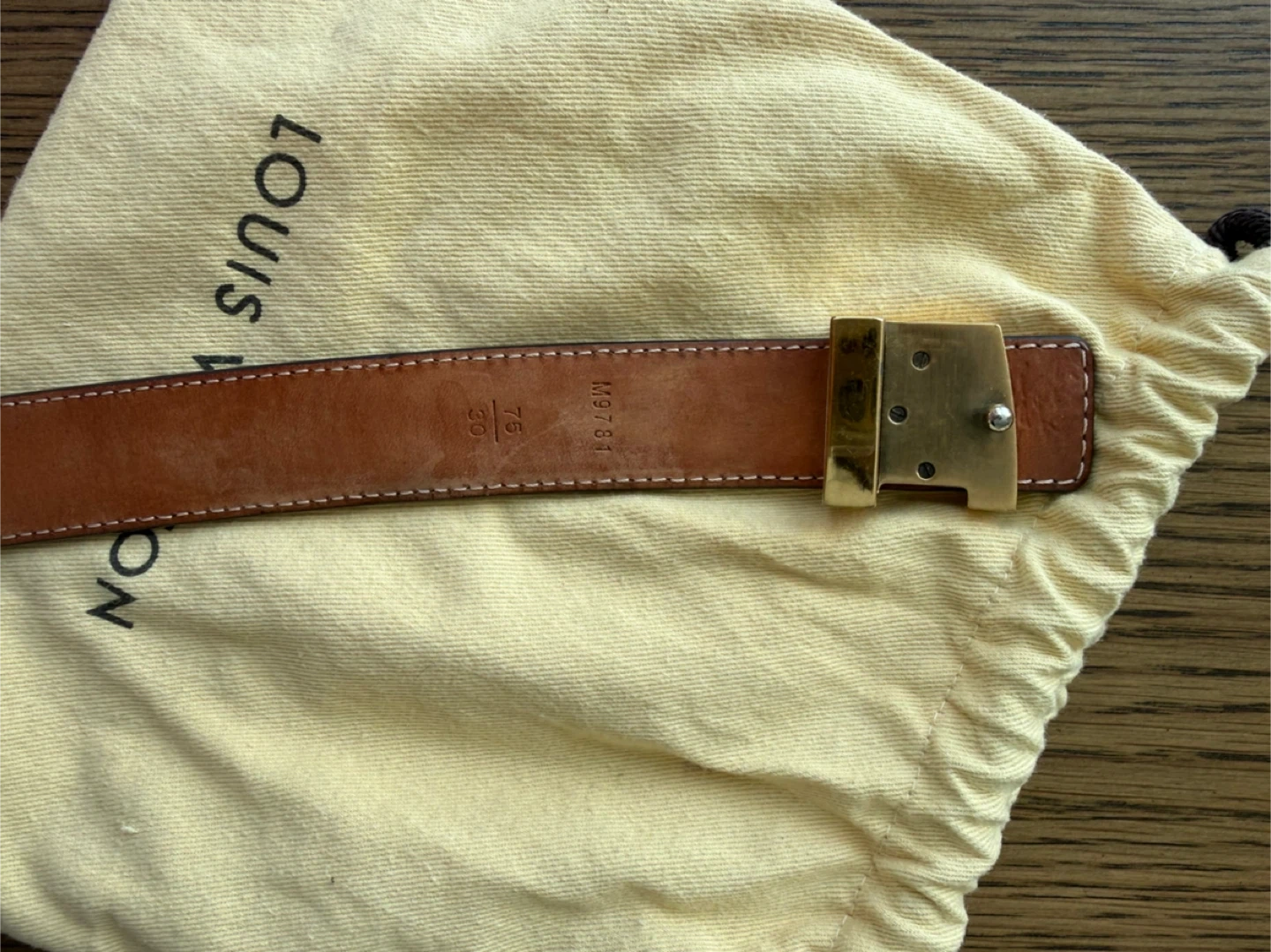 18Selling a Louis Vuitton belt in good condition! It's a brown leather belt with the classic LV monogram pattern. - Brand: Louis Vuitton - Size: 75/30 - Model: M9821 Comes with the original dust bag Bought in LV boutique Dubai