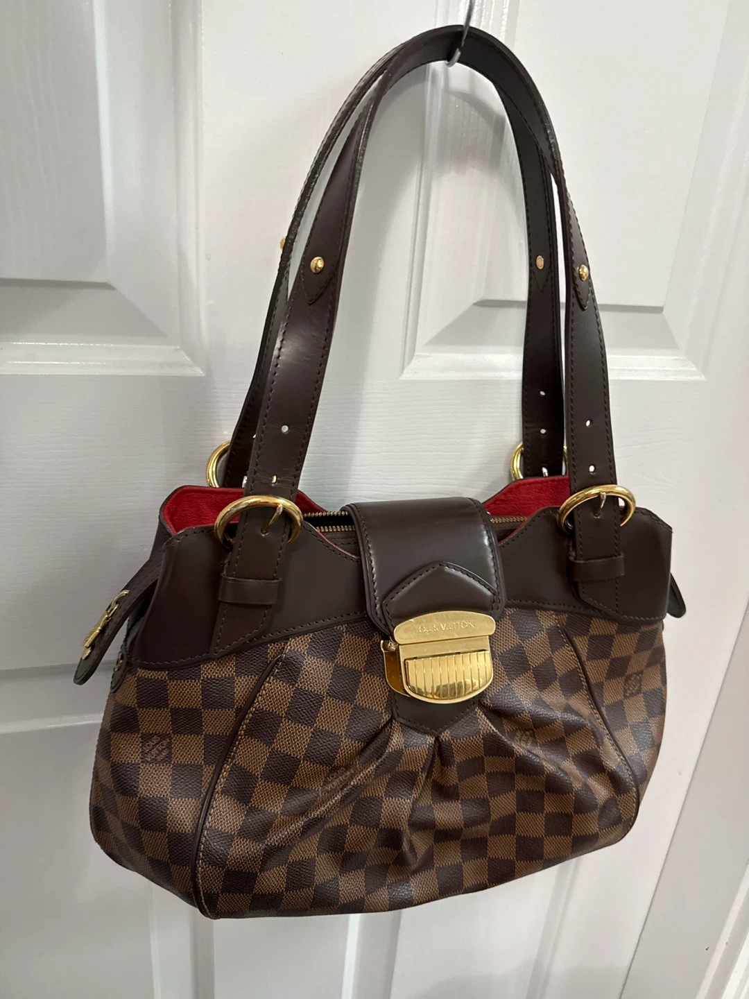 60Selling a Louis Vuitton Damier Ebene Hampstead PM bag! It's in great condition and features the classic Damier Ebene canvas with dark brown leather trim and gold-tone hardware. The interior is a vibrant red colour. Perfect for everyday use!