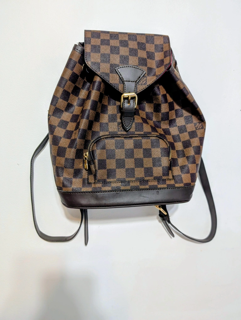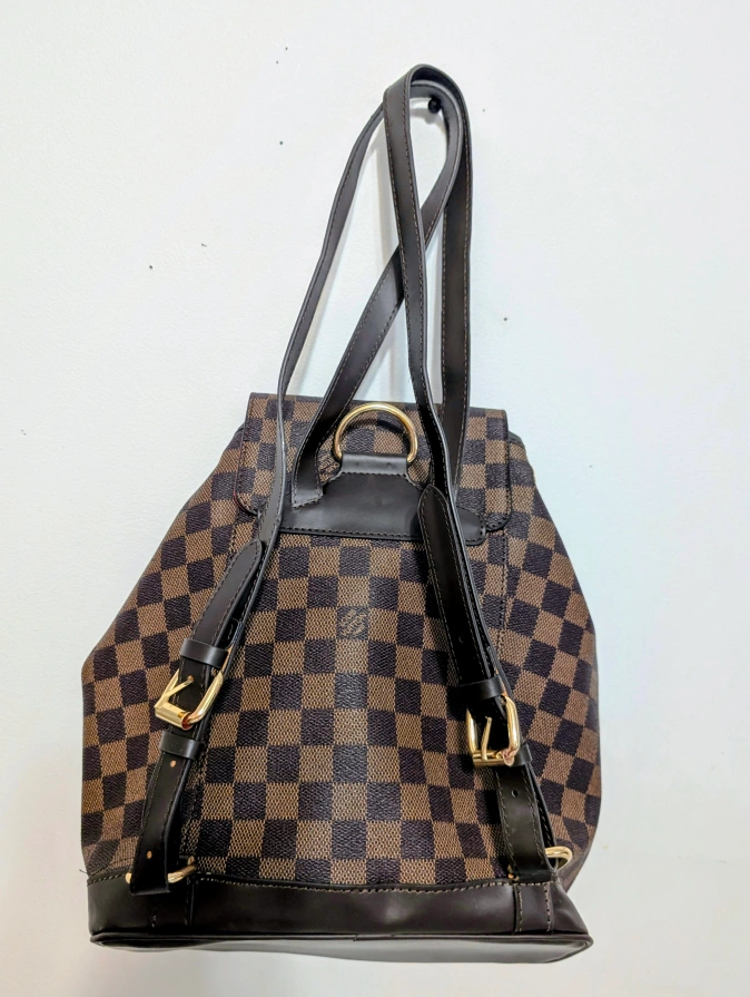 Here's a Louis Vuitton Damier Ebene Lockme backpack. It's in great condition and ready for a new home! The classic checkered design is super stylish, and it's a perfect size for everyday use. Feel free to ask any questions!