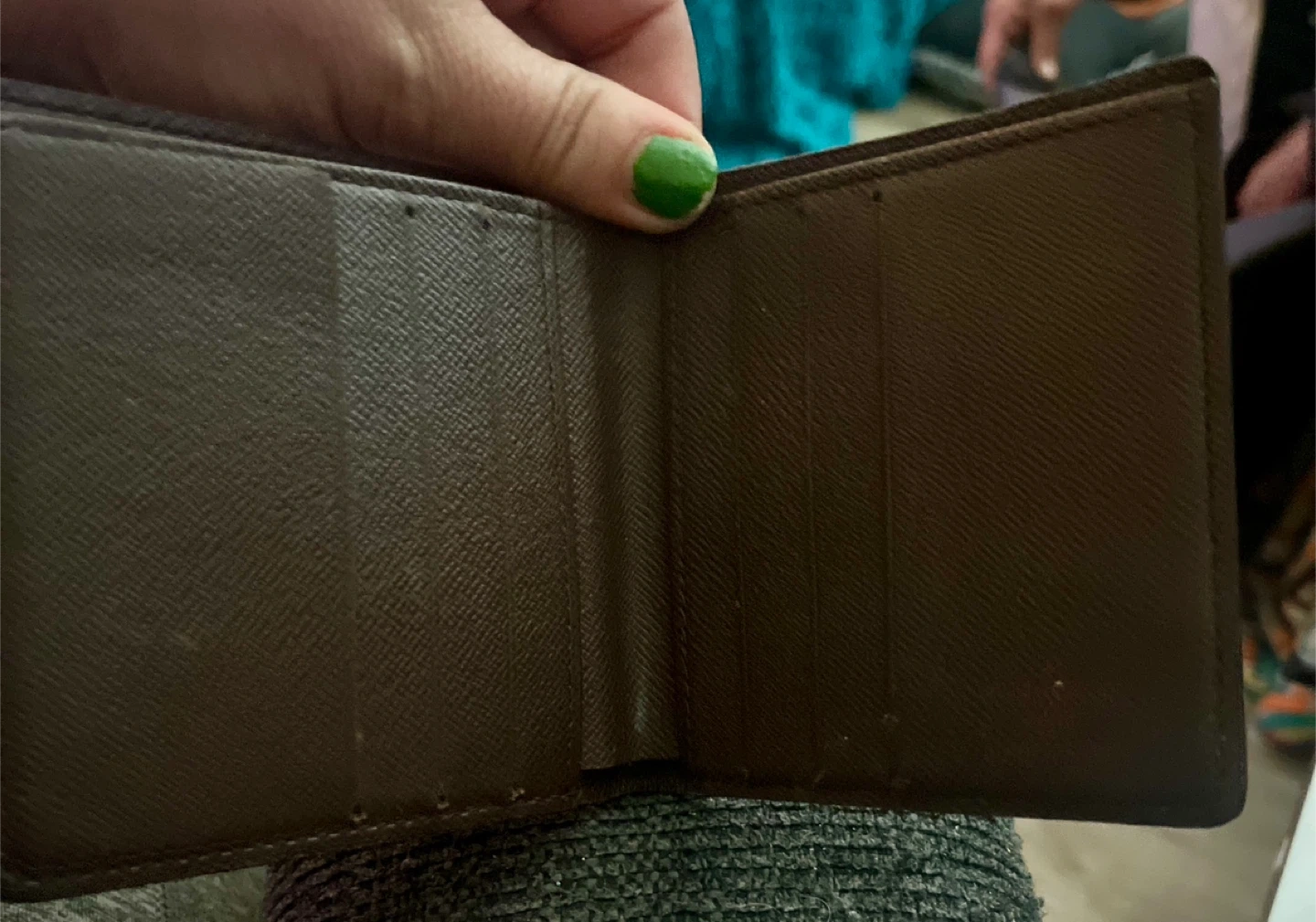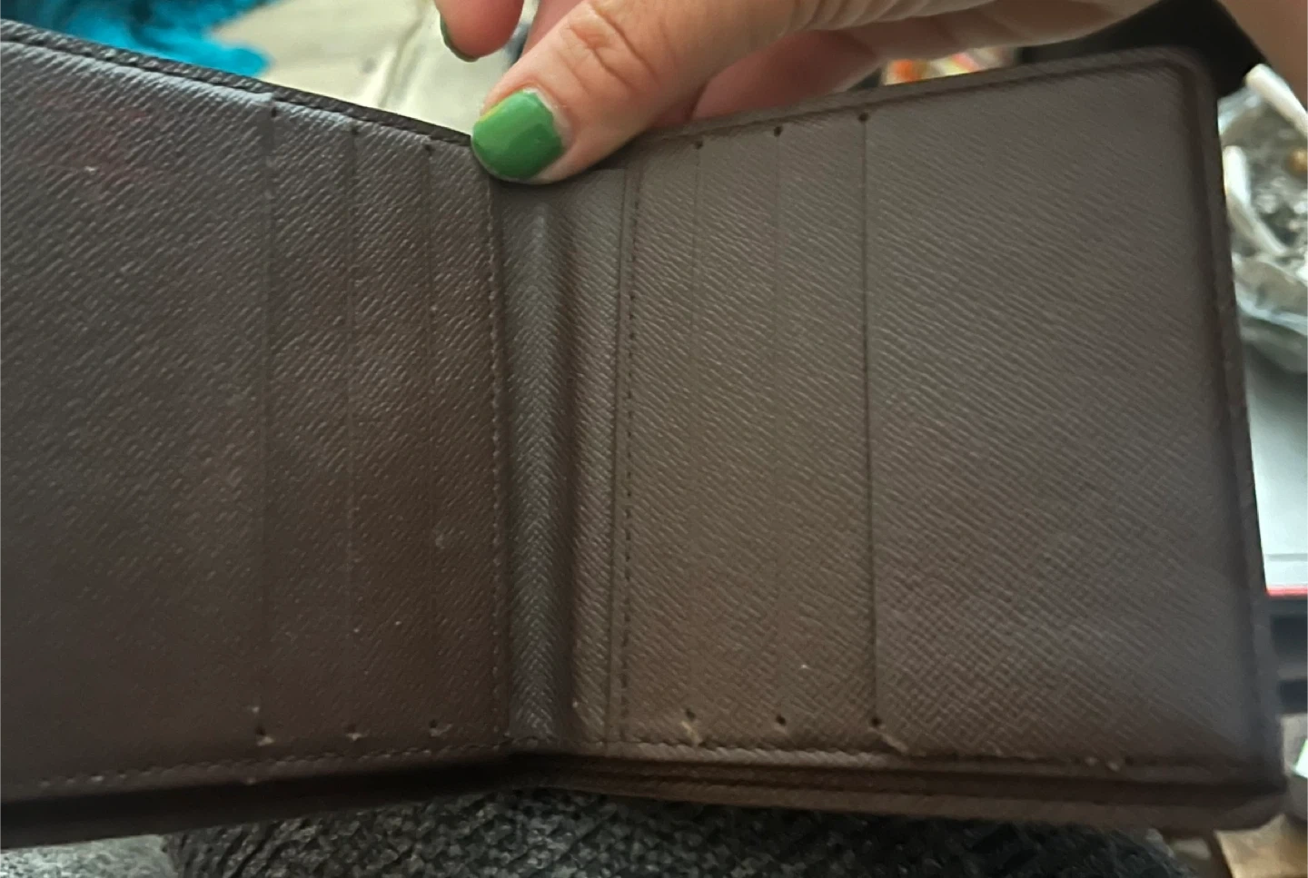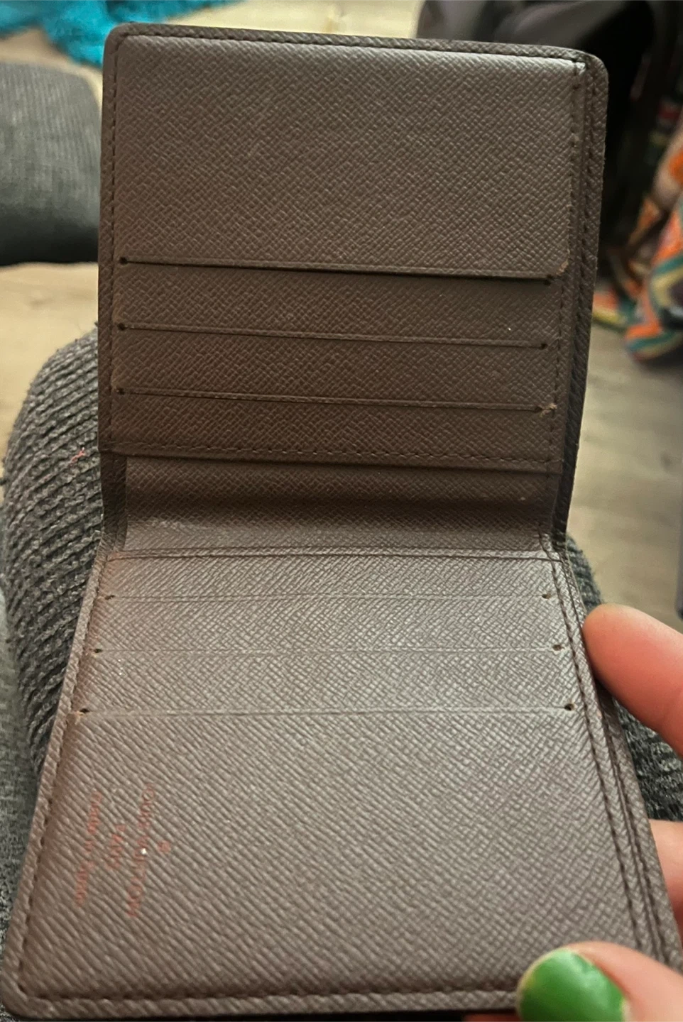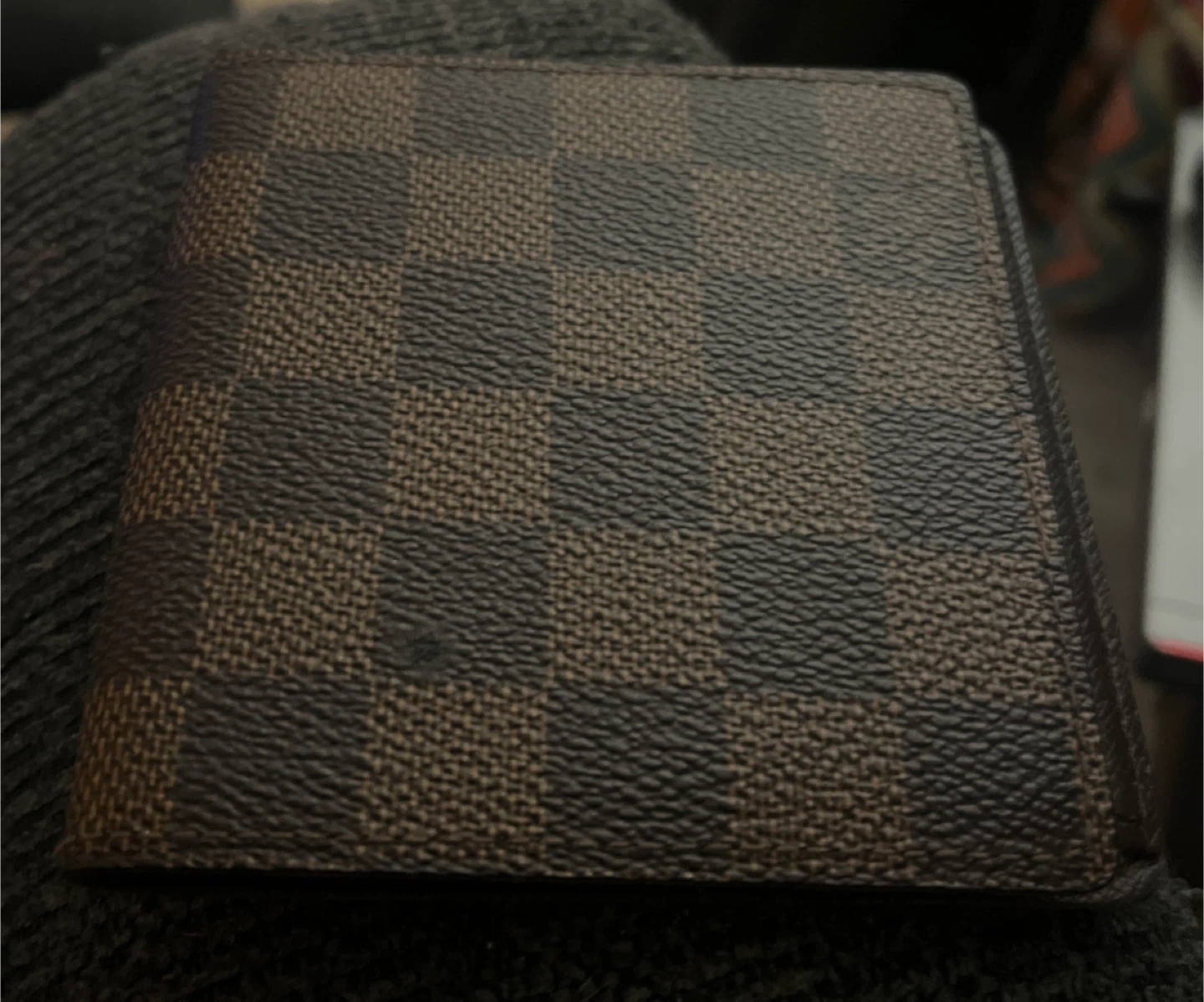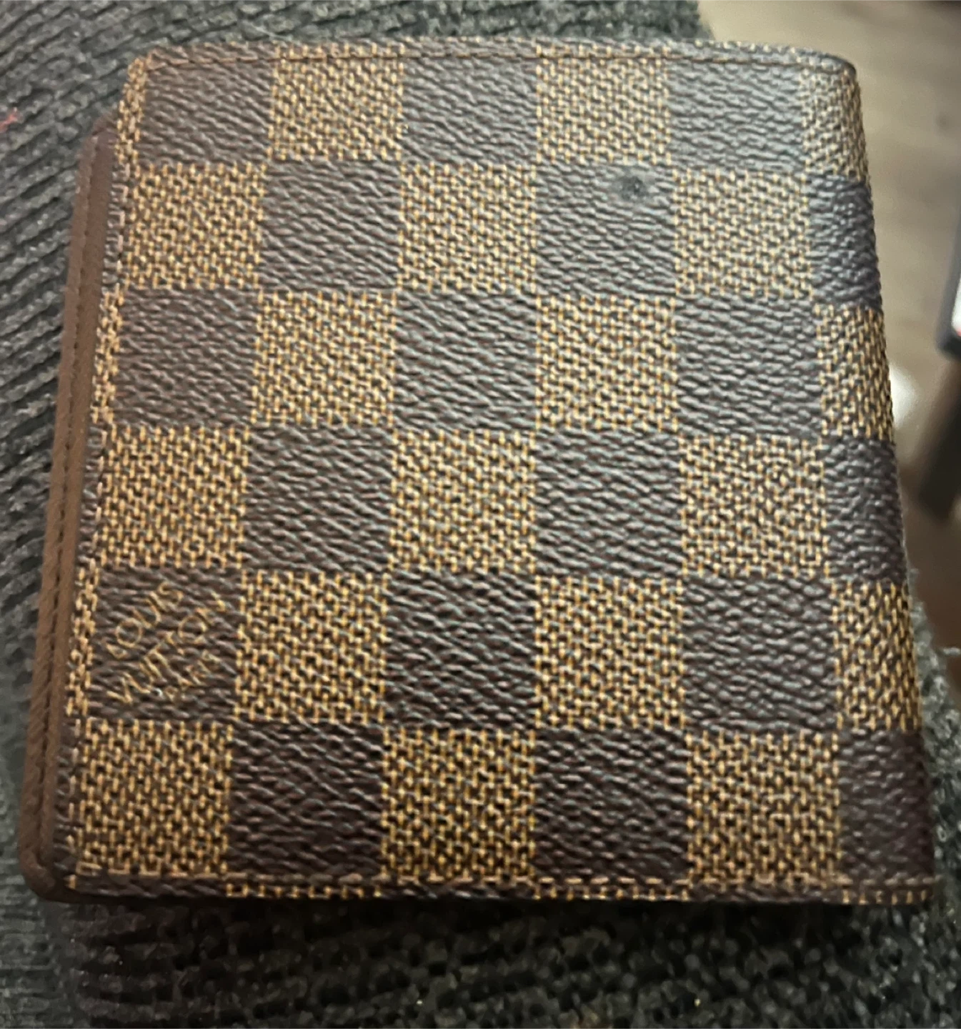 Selling a Louis Vuitton Damier Ebene Marco Wallet. It's a stylish and compact wallet, perfect for everyday use. Features the classic Damier Ebene canvas and multiple compartments for cards and bills. One seam is torn but easily repairable.