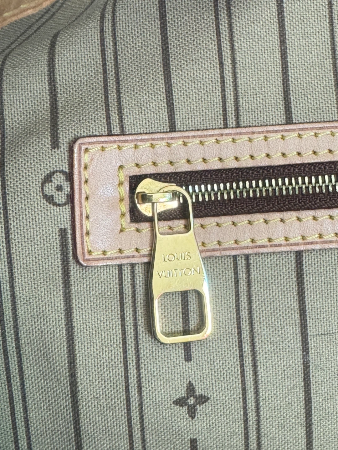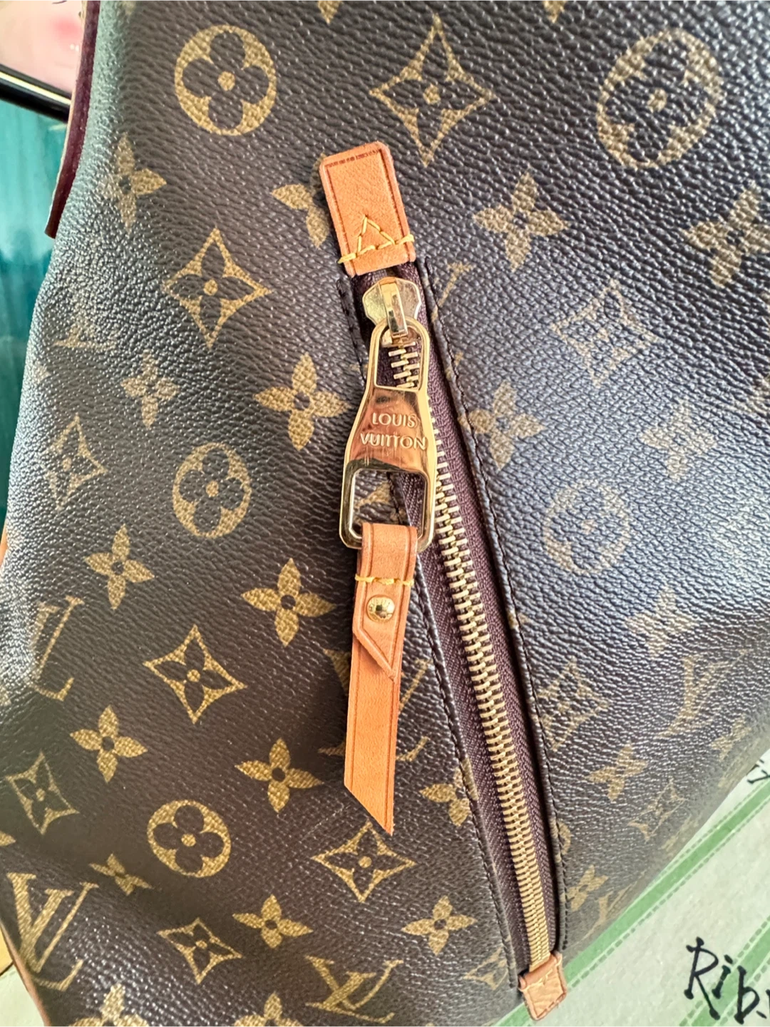 134Selling a Louis Vuitton shoulder bag in good condition. It features the classic LV monogram pattern on brown leather. The interior has a striped lining with a zippered pocket. The bag has a serial number SD2181.