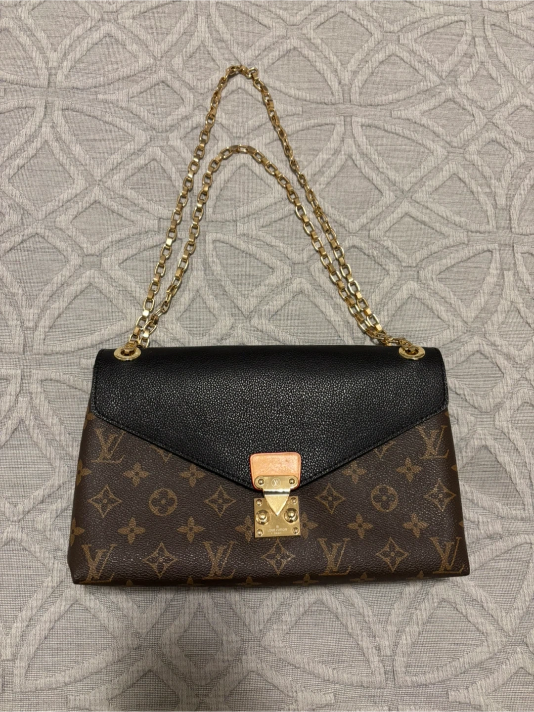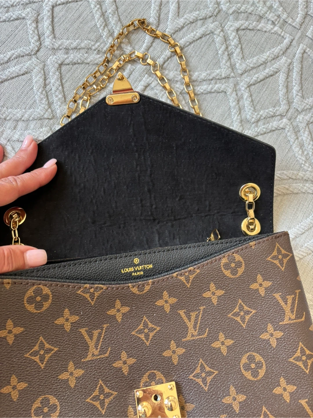 68Selling a Louis Vuitton inspired Metis Chain Bag! It features the classic monogram canvas with a black leather flap and a gold-tone chain strap. A stylish and timeless piece!