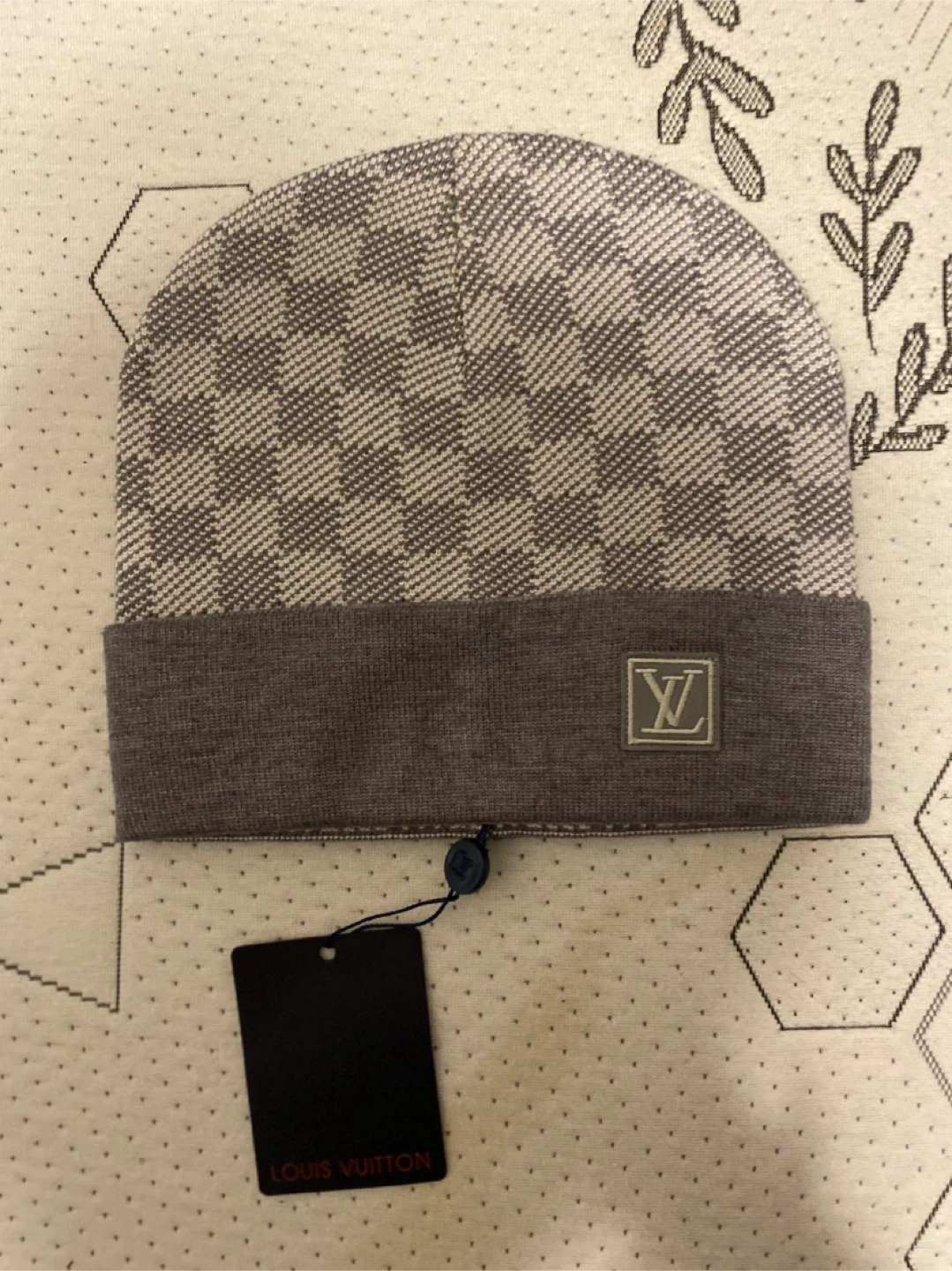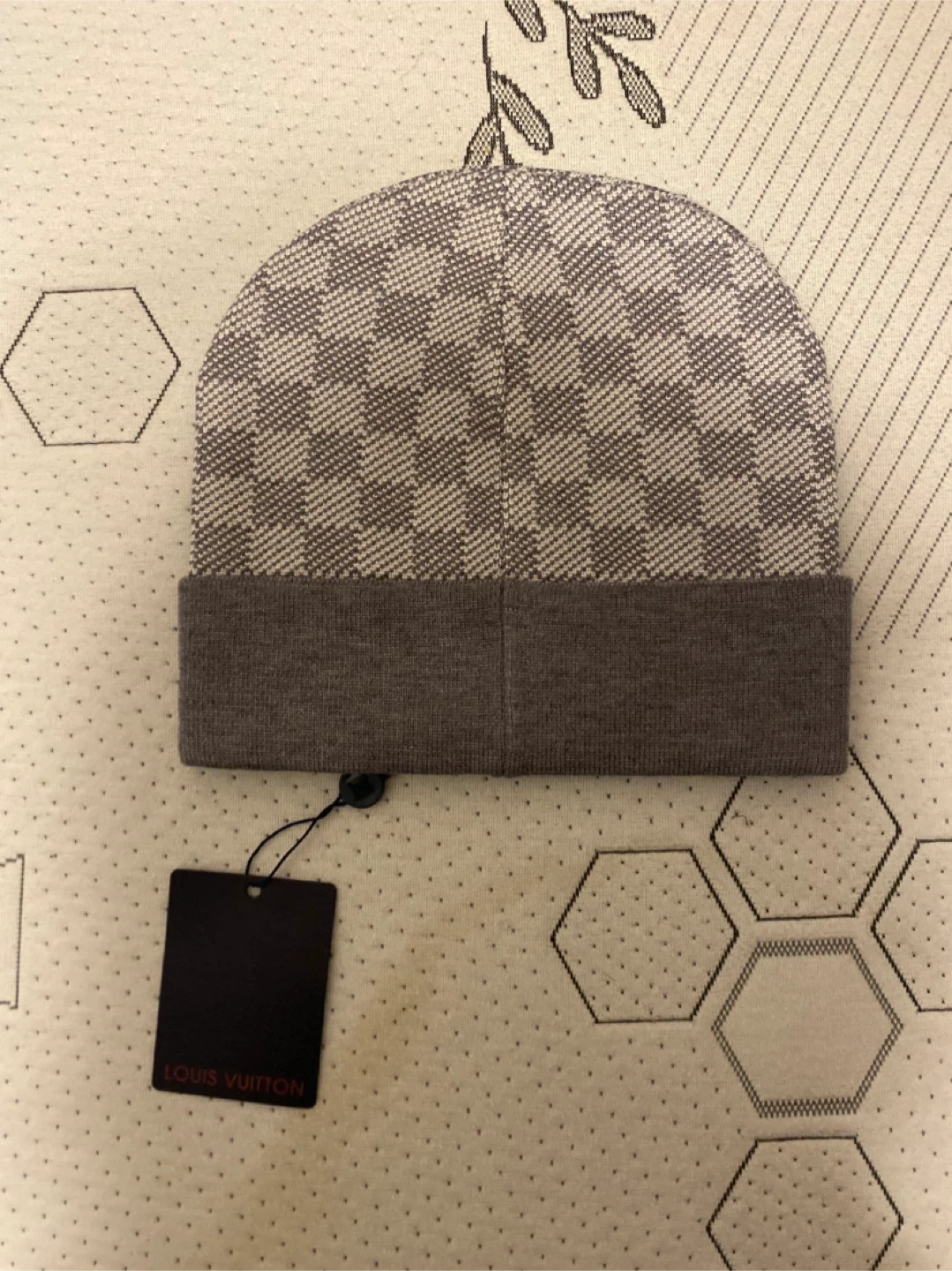 10A stylish Louis Vuitton beanie with the iconic Damier pattern. It's a great way to keep warm while looking fashionable. The beanie is in excellent condition and ready for a new home!