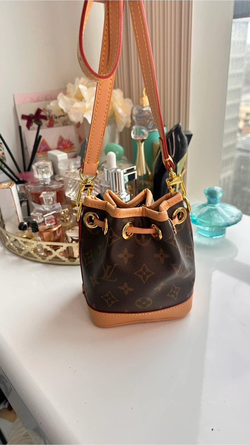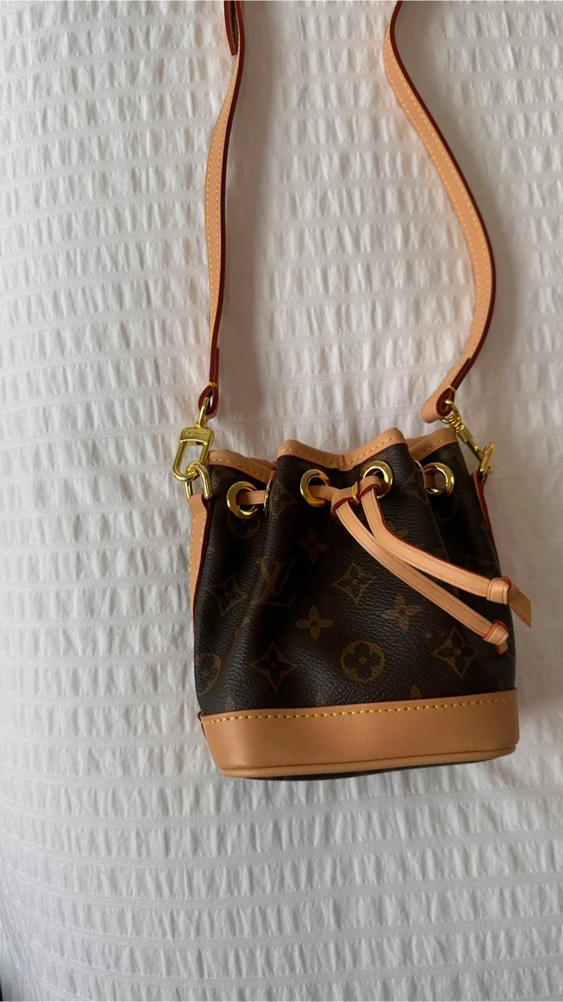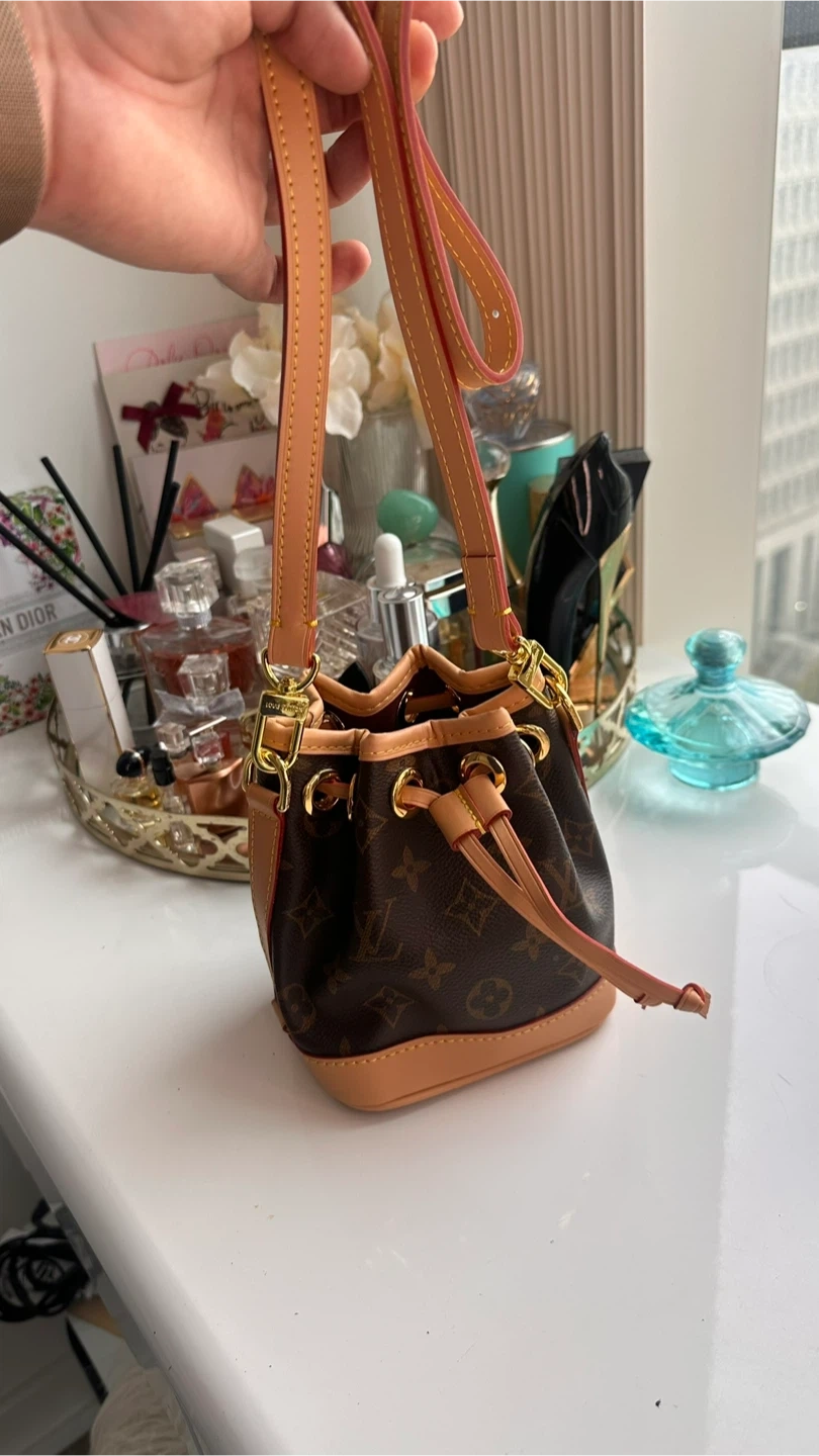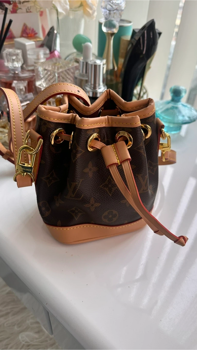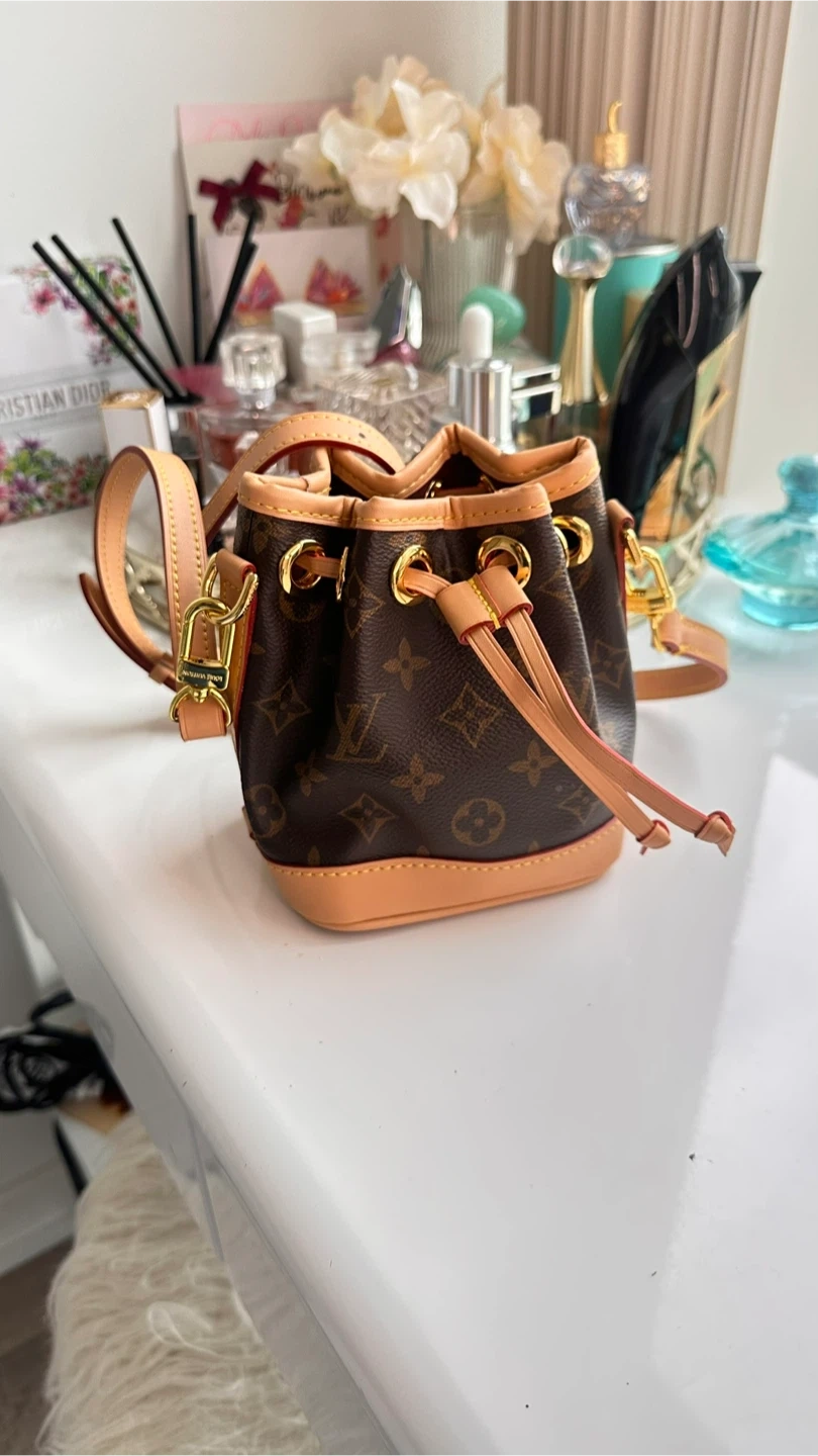 Selling a Louis Vuitton Nano Noe bag. It's a cute, compact size and features the classic LV monogram. Perfect for everyday use!