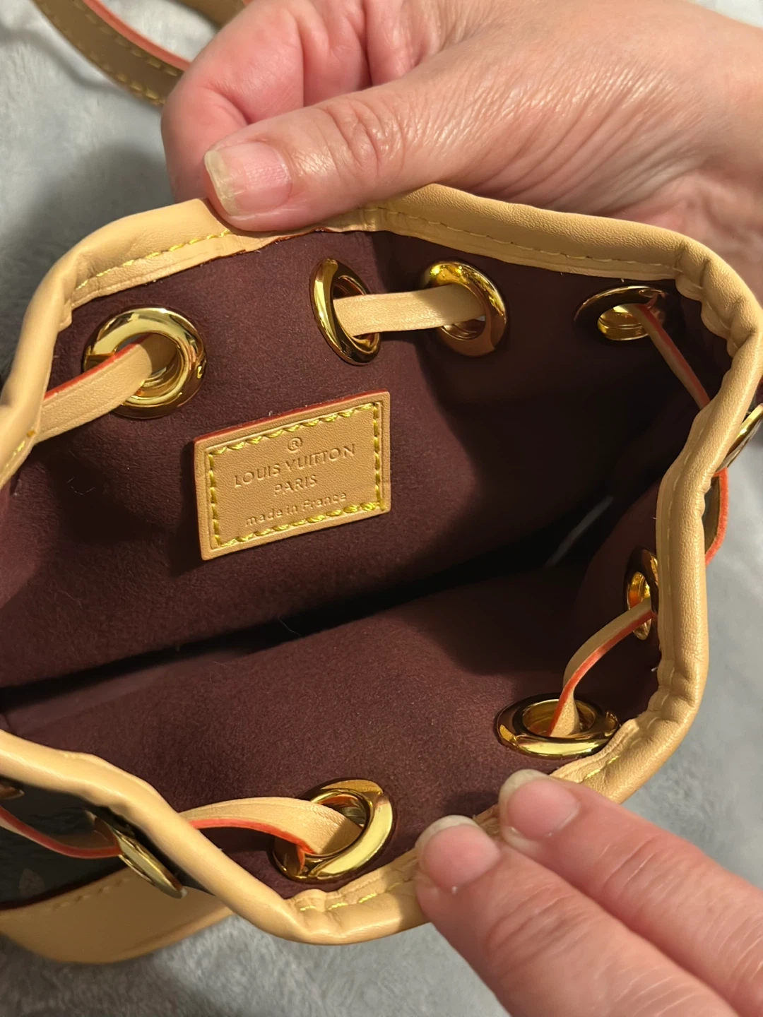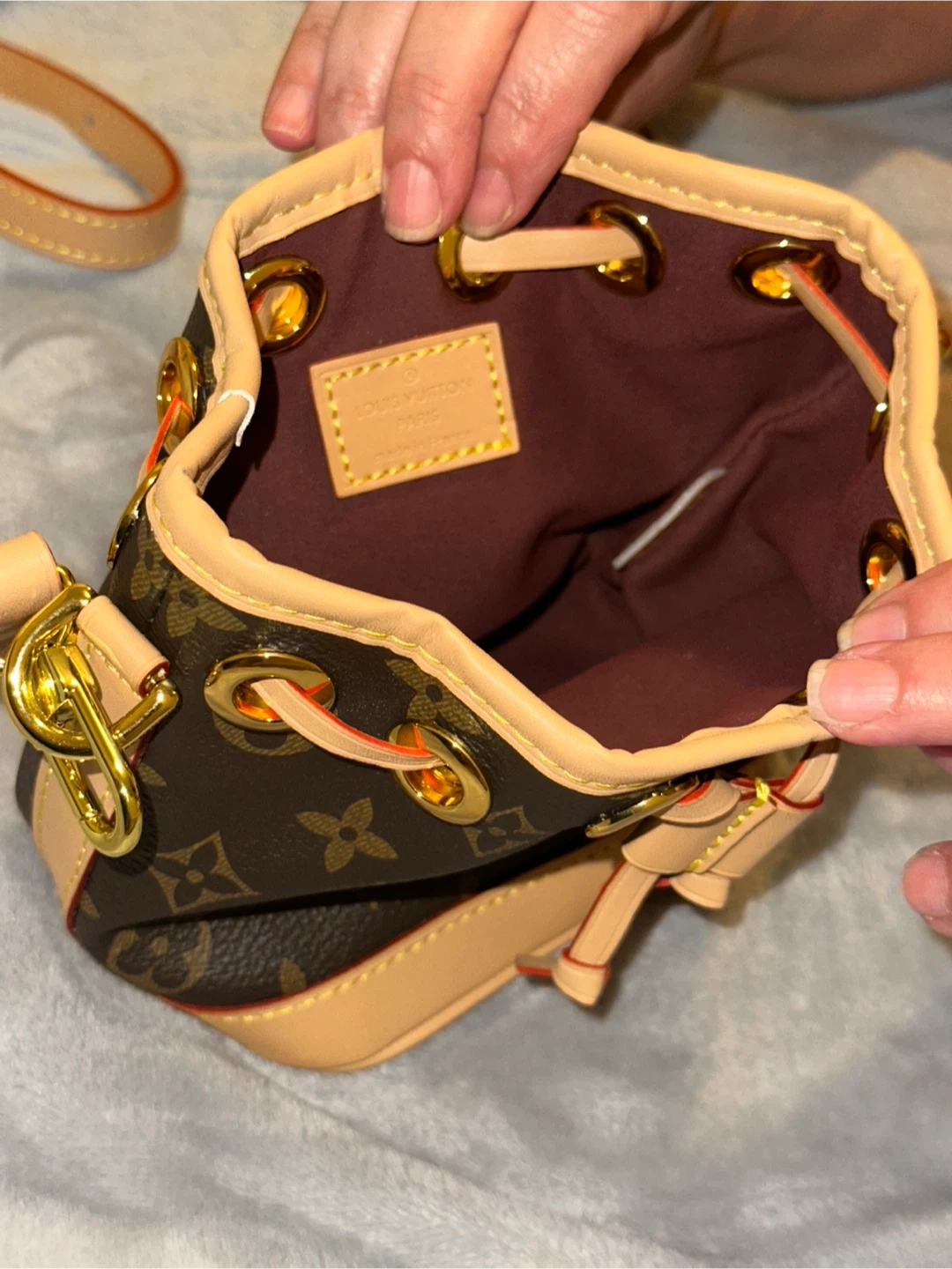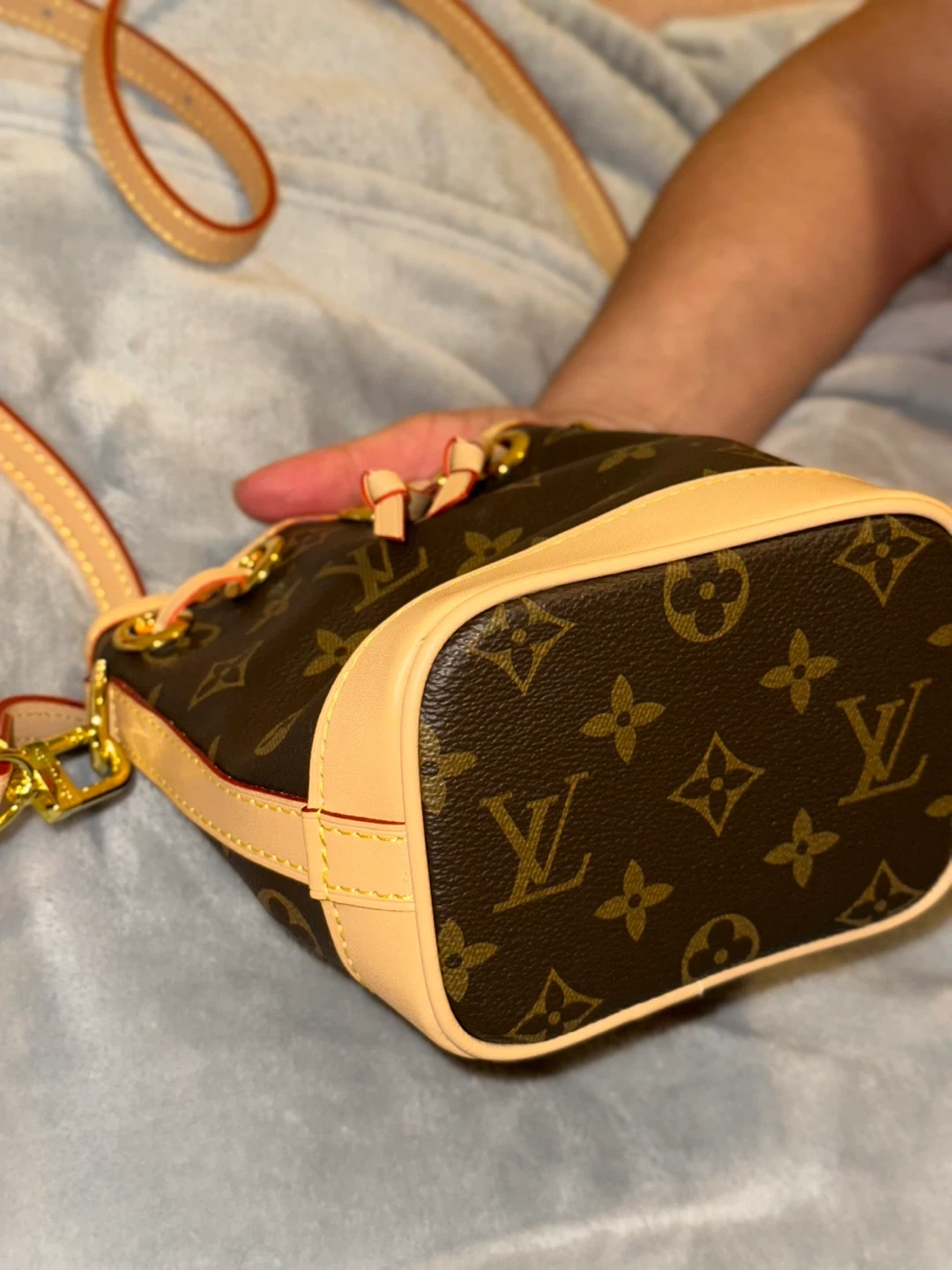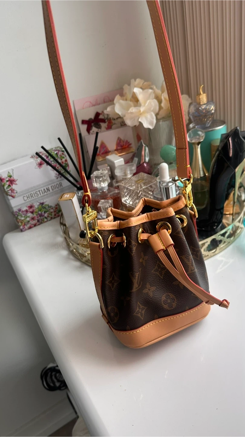 Selling a Louis Vuitton Nano Noe bag. It's a cute, compact size and features the classic LV monogram. Perfect for everyday use!
