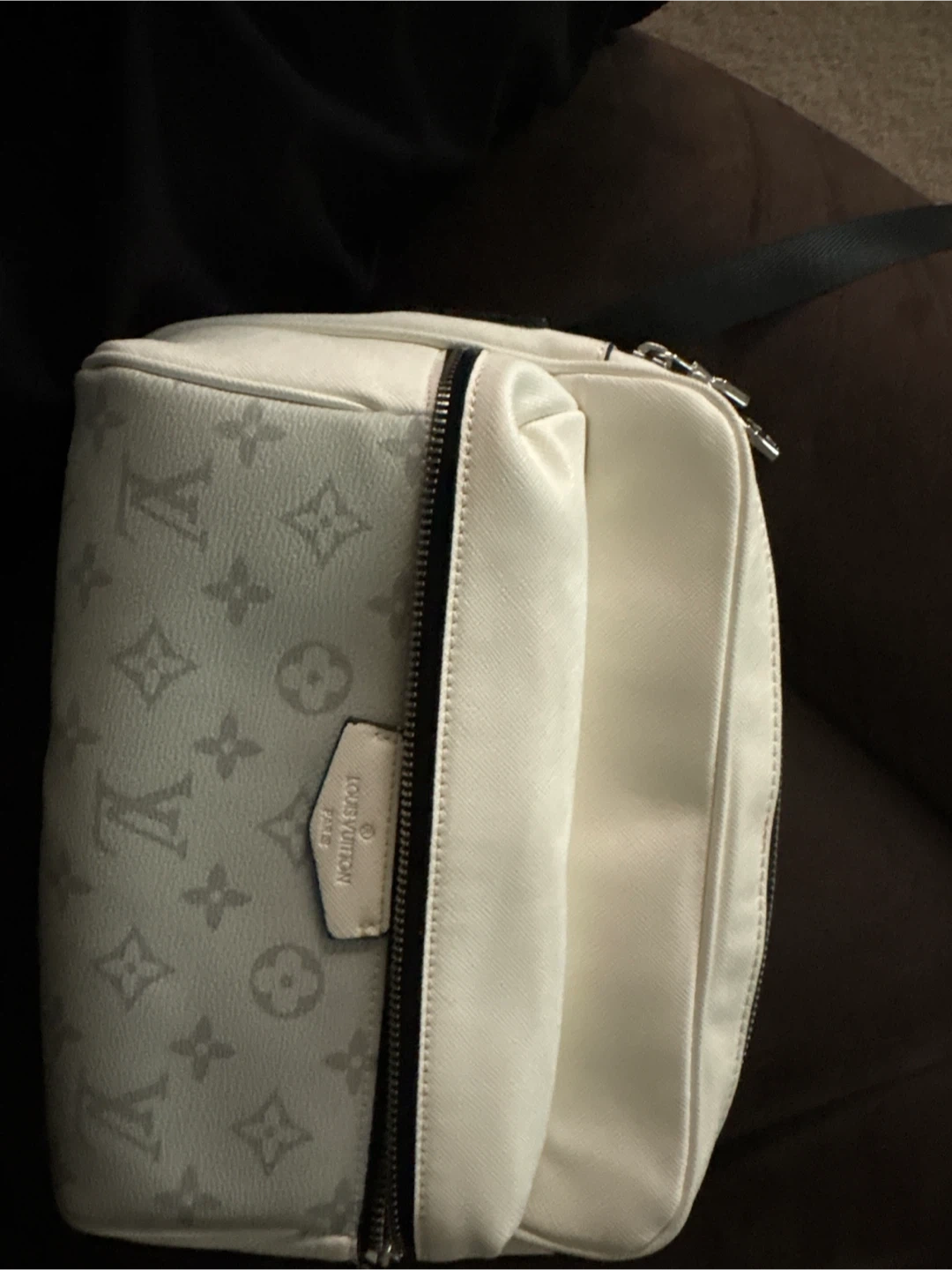 10Selling a stylish Louis Vuitton bum bag in white with the iconic monogram embossed pattern. Perfect for keeping your essentials close and adding a touch of luxury to your outfit. The bag is in great condition never used and features a comfortable, adjustable strap.