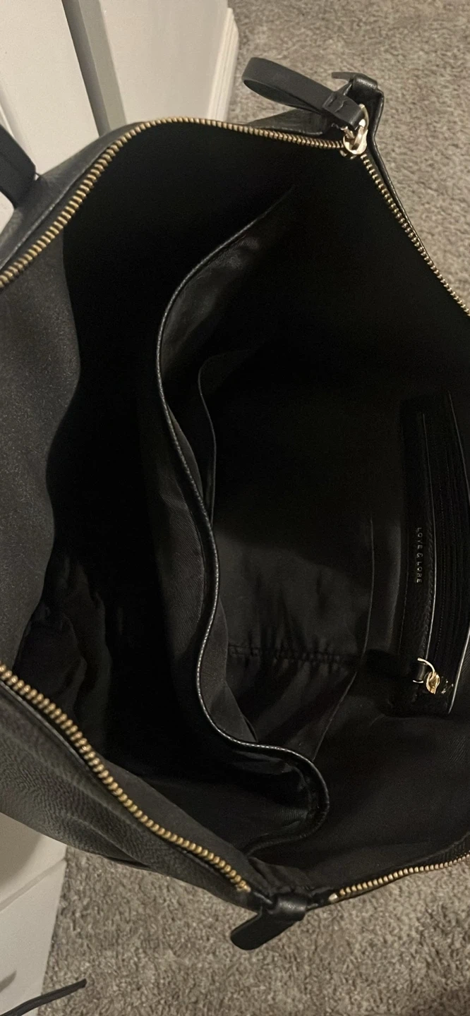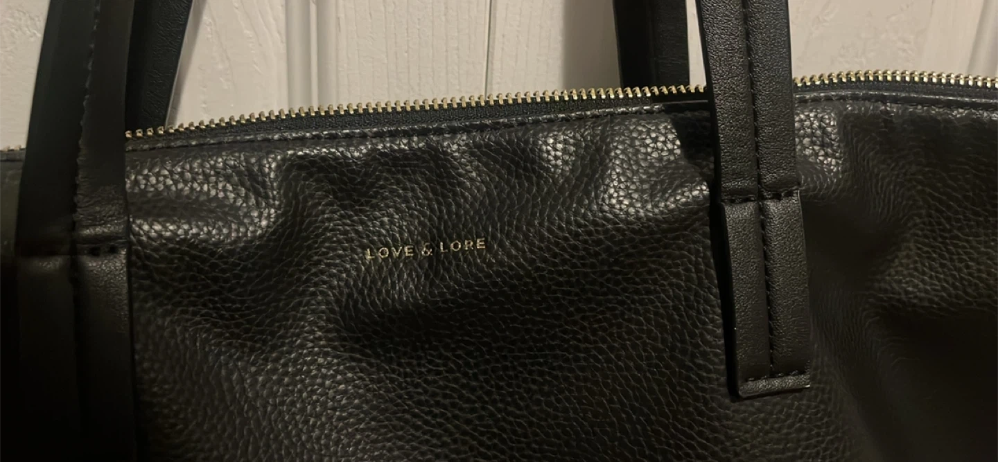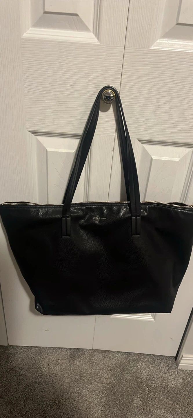 25Selling a Love & Lore tote bag in black. It's in great condition and perfect for everyday use! The bag features a zipper closure and interior pockets.
