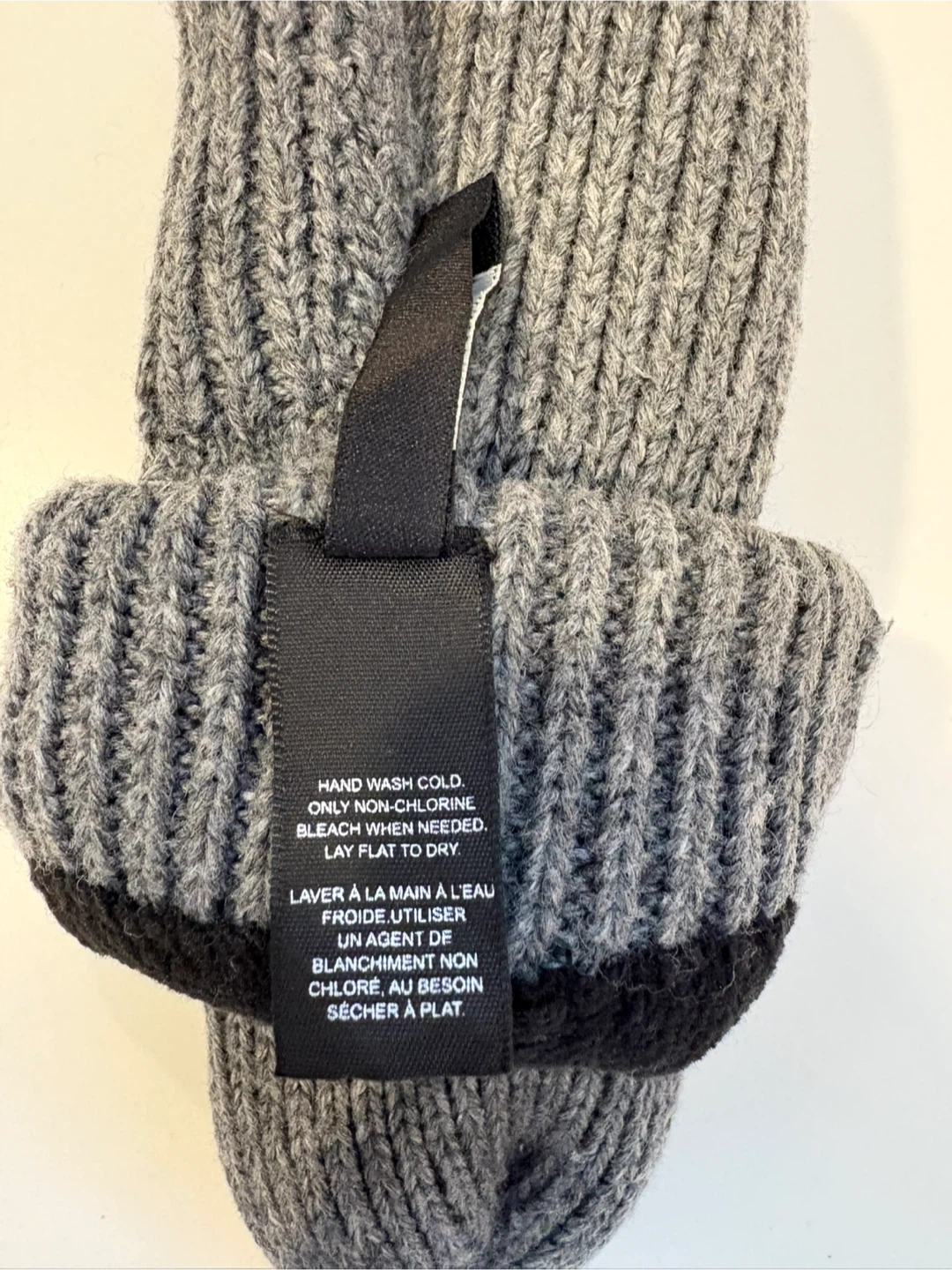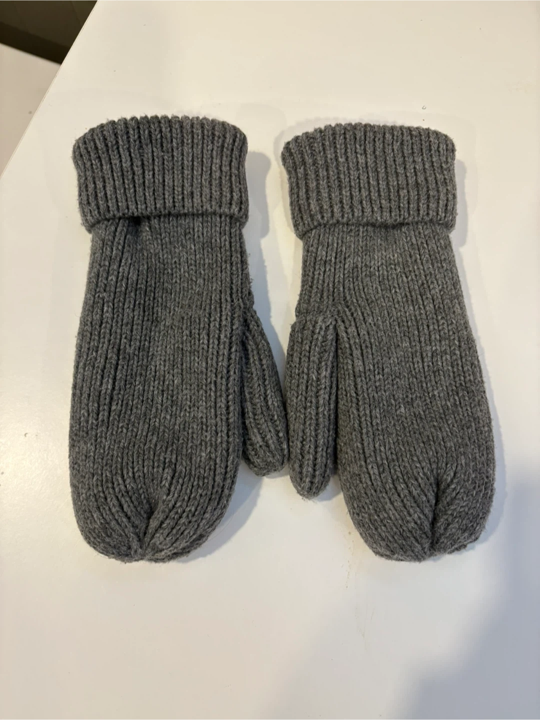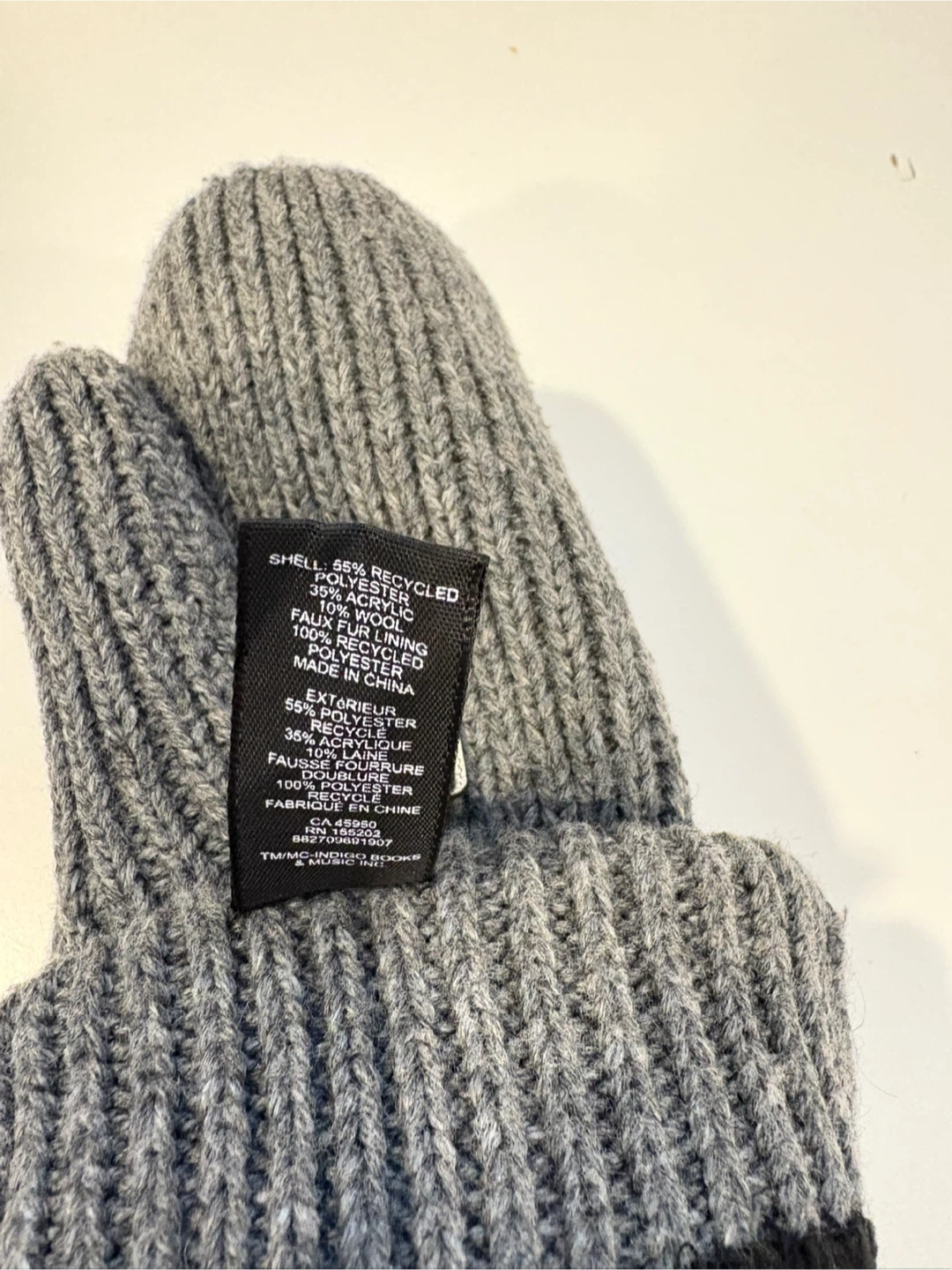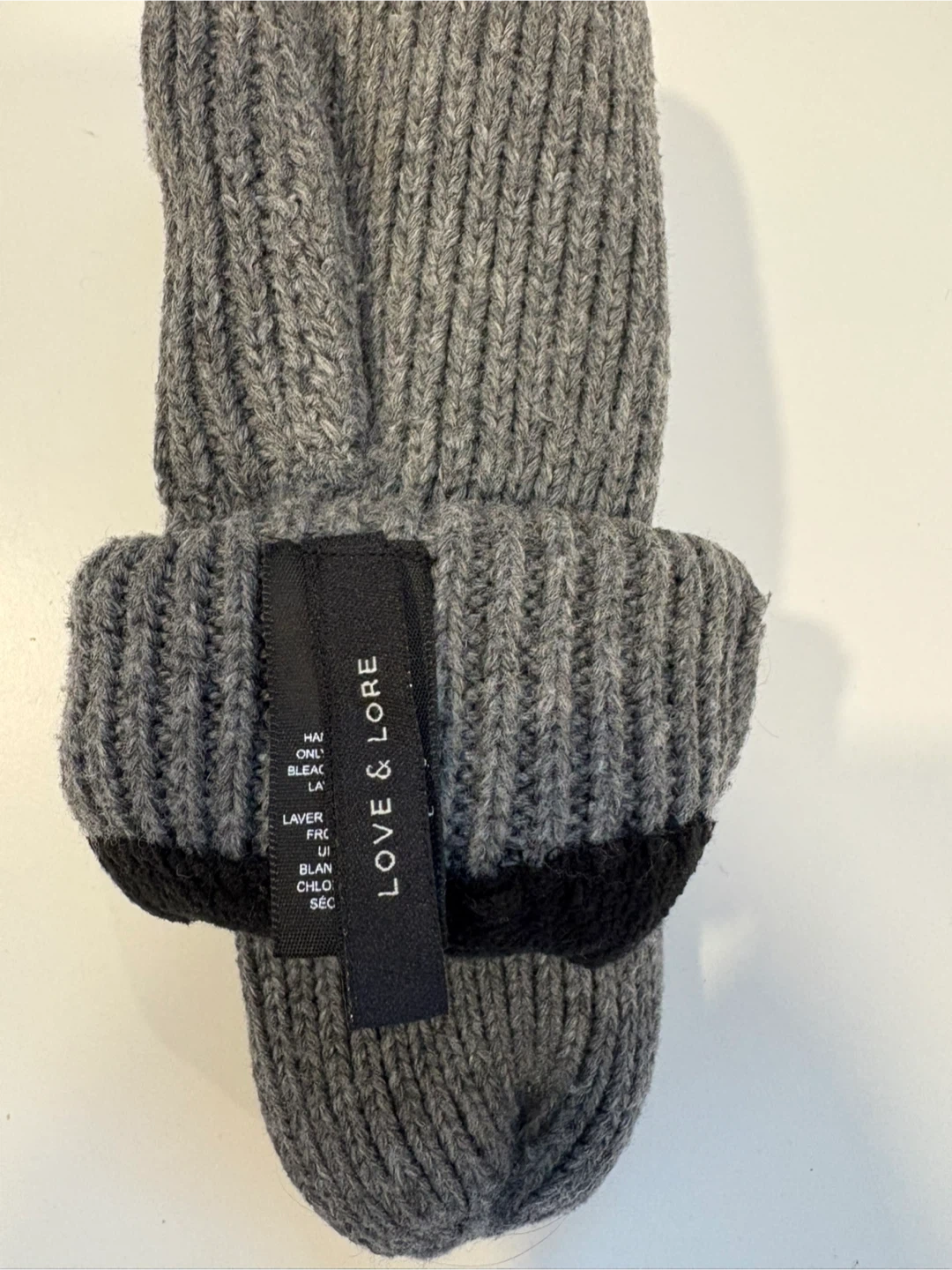 65Keep your hands warm with these cozy Love & Lore mittens! They're a lovely grey colour and made with a blend of recycled polyester, acrylic, and wool for extra warmth. They're in great condition and ready for a new owner to enjoy this winter season