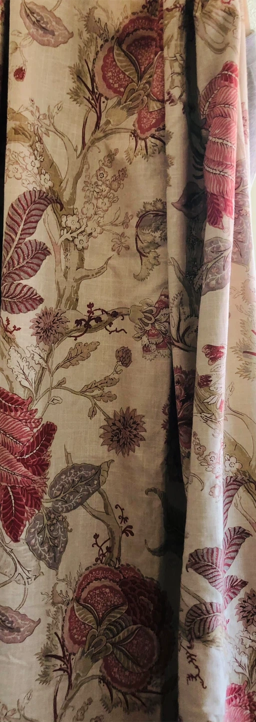 Selling two (2) panels of chintz curtains with a beautiful floral pattern on one side and a blackout lining on the other. It's in great shape and ready to add some style and darkness to your room. Measures: length: 92” x 52” width.