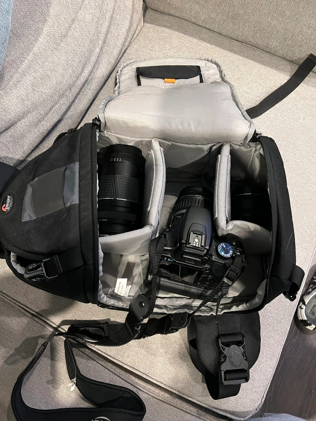 68Selling a Lowepro camera sling backpack in great condition! It's perfect for carrying your camera and lenses while you're out and about. Lots of compartments to keep everything organized and secure