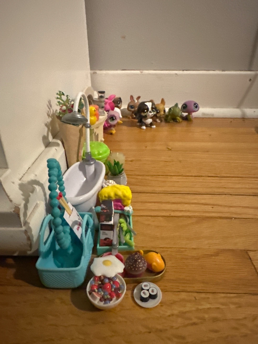 10older gen and newer gen littlest pet shops with accessories, mini brands food and decoration. Walkable needs new batteries but the rest are good! compared prices on EBAY and these pets can go for over $100 combined asking $30 cash only please pickup indus or can meet in langdon for $5