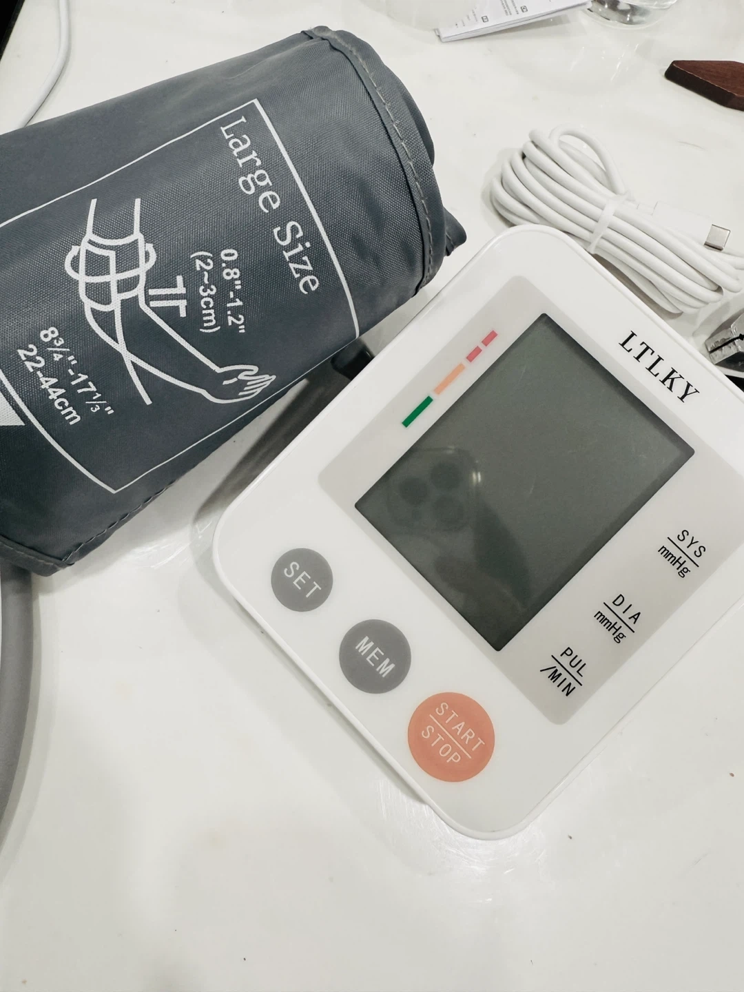 157NEW condition! Selling a LTLKY blood pressure monitor with a large size cuff. It comes with the monitor unit and a USB charging cable. The cuff size is 8 3/4" - 17 1/2" (22-44cm). It's in great condition and ready for a new home!