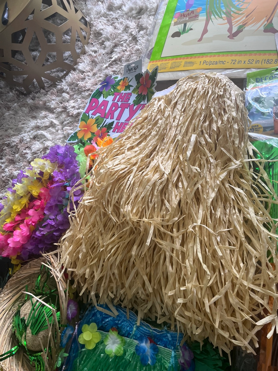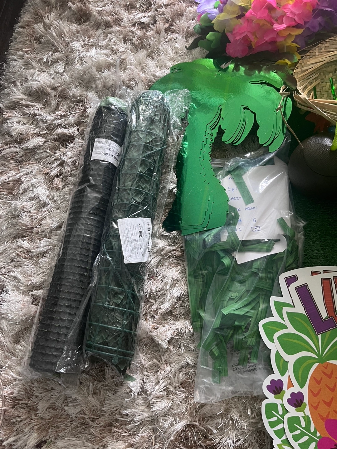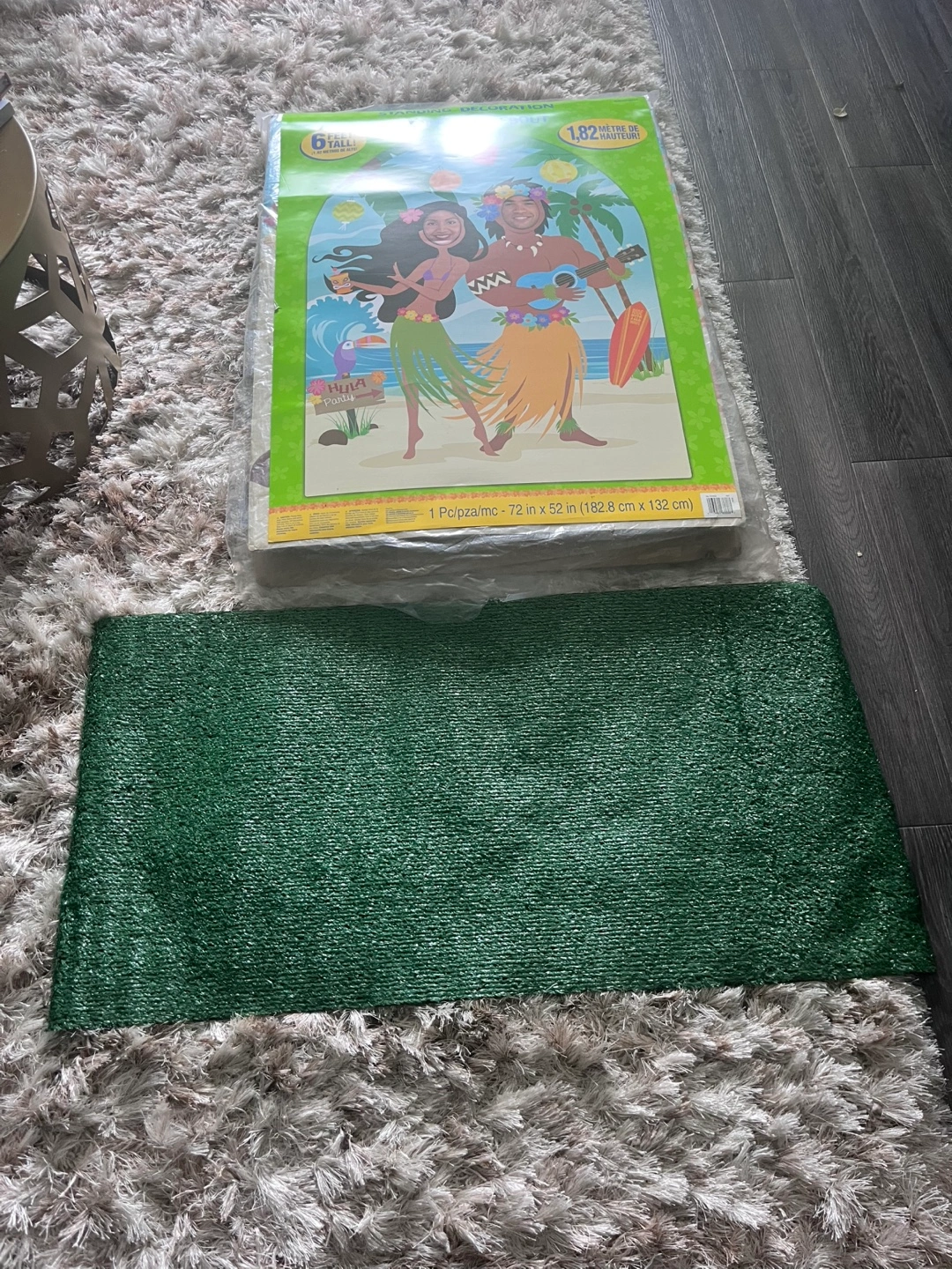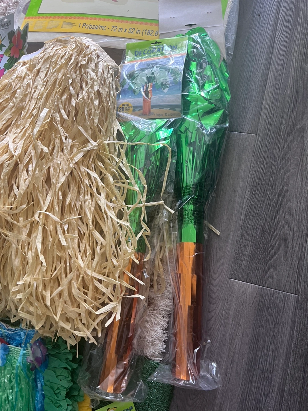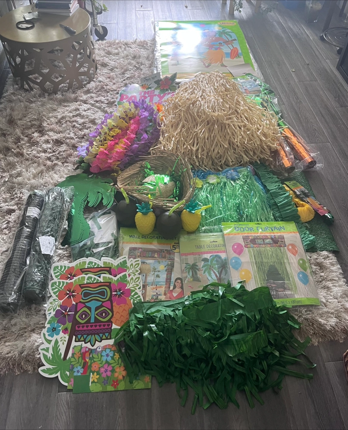 Get ready to hula! This Luau Party Wall Decorating Kit from amscan is a giant 5-piece set that will transform any space into a tropical paradise. Perfect for indoor or outdoor use, it includes pieces measuring 52.5 x 59 inches (82.5 x 149.8 cm), 44 x 16 inches (111.7 x 40.6 cm), and 10 x 16 inches (25.4 x 40.6 cm). Also included are table decorating kits with centerpieces and confetti to complete the look! Tiki party set pickup Kelvin Grove. Over 75 piece all ready for your tiki backyard party. 6ft cut out 2 table skirts 1 - Lawn sign 15 - Lays 1 - Privacy grass 2 - Fake grass 5 - Coconut tree 1 - straw hat 4 - Drink cups with lids and straws 2 - 20” Tall trees 4 - Straw skirts 2 - Pineapple center piece 3 - plastic signs 5 Piece wall decorating kit 23 Piece table decoration kit 1 - Large center piece 1 - Door curtain 2 - Large wall grass