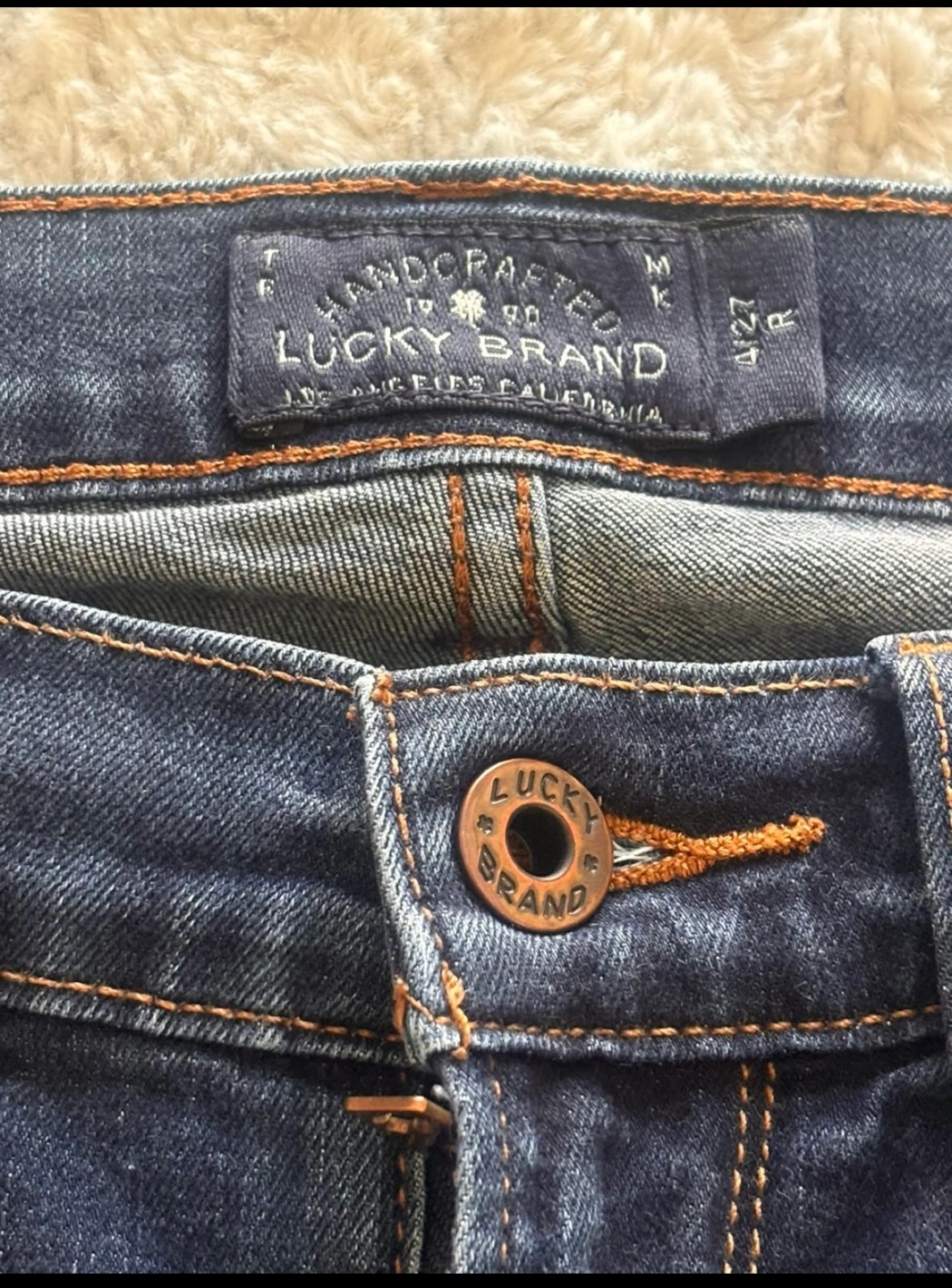 Lucky Brand Womenβs Size 4/27 R - Charlie Skinny Jeans Button Zip Dark Wash EXCELLENT CONDITION, NO TEARS, NO STAINS Approximately 39β Length, 5β bottom width PLEASE SEE PHOTOS FOR ADDITIONAL INFORMATION AND MEASUREMENTS