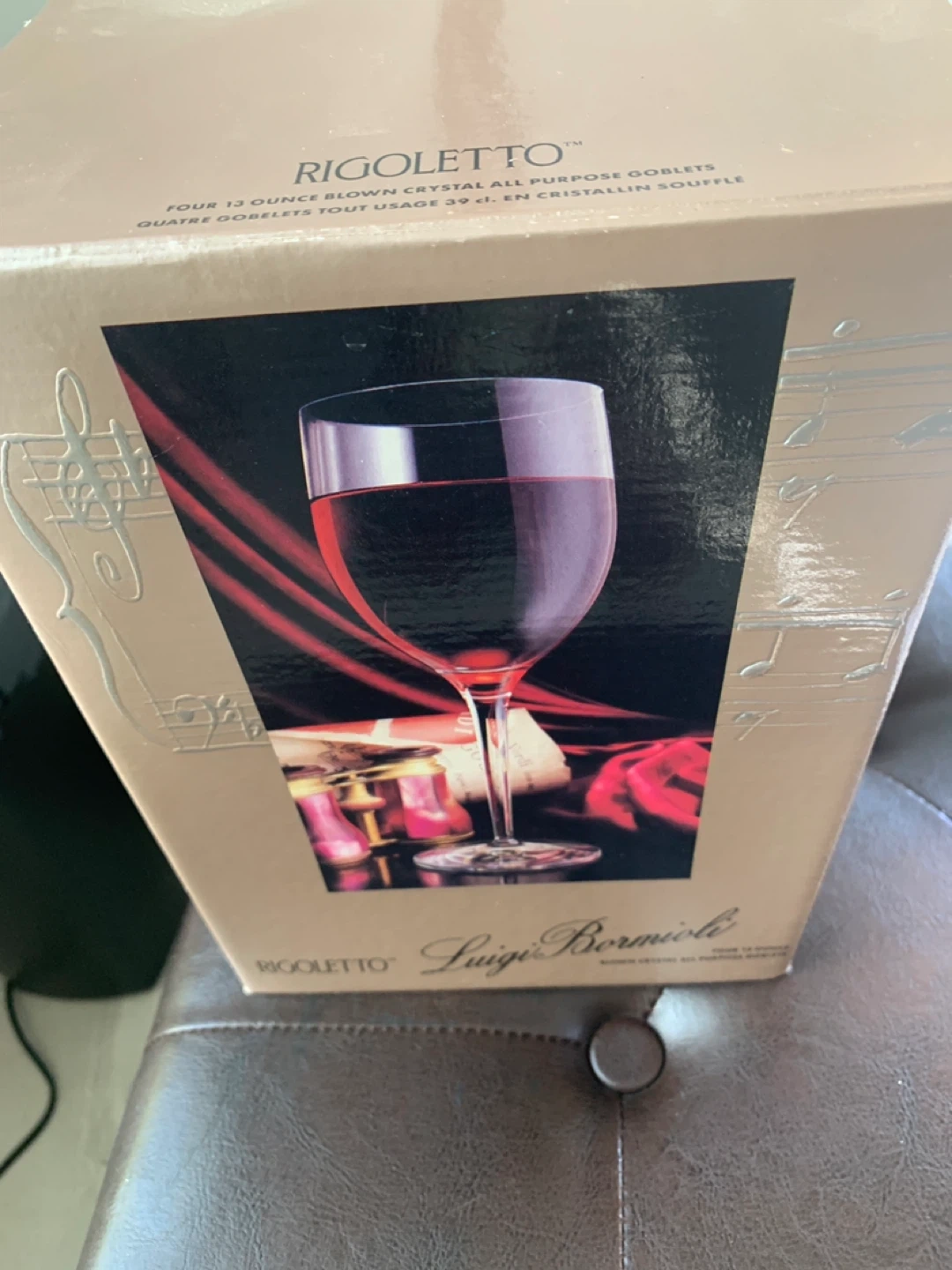 15Selling a set of four Luigi Bormioli Rigoletto all-purpose goblets. These are made of blown crystal and each holds 13 ounces (39 cl). Comes in the original box!