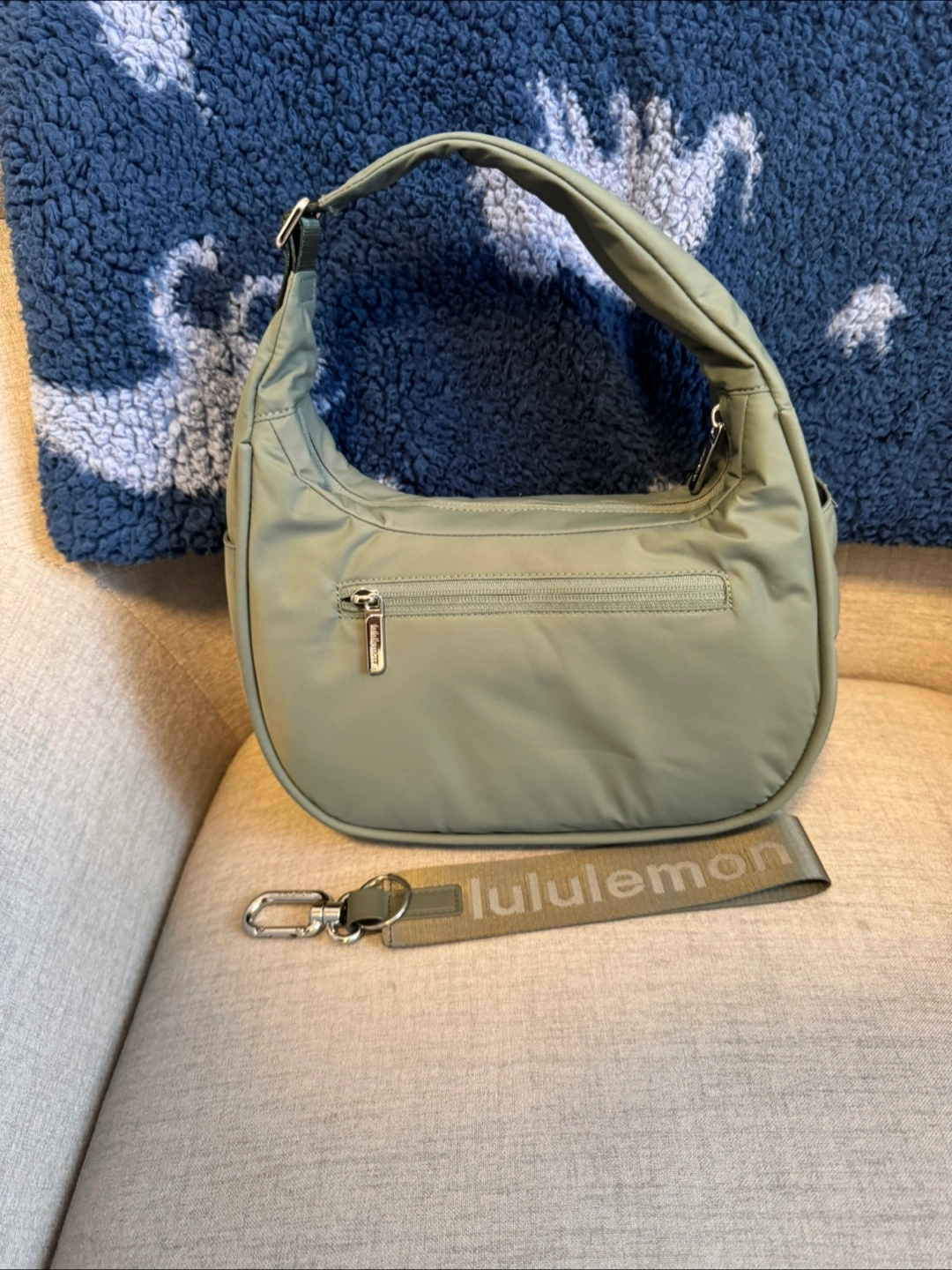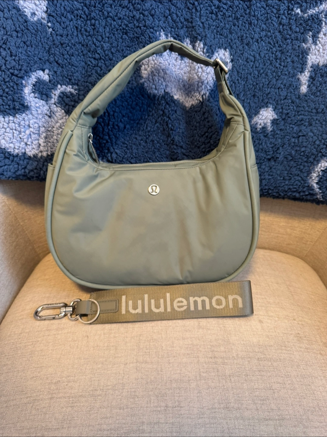 Selling a Lululemon 4L mini shoulder bag in colour green eucalyptus! It comes with a matching Lululemon never lost keychain in Sage grey colour! Great for keeping your essentials close by while you're on the go! Perfect for green lovers! Pickup only! Cash only!