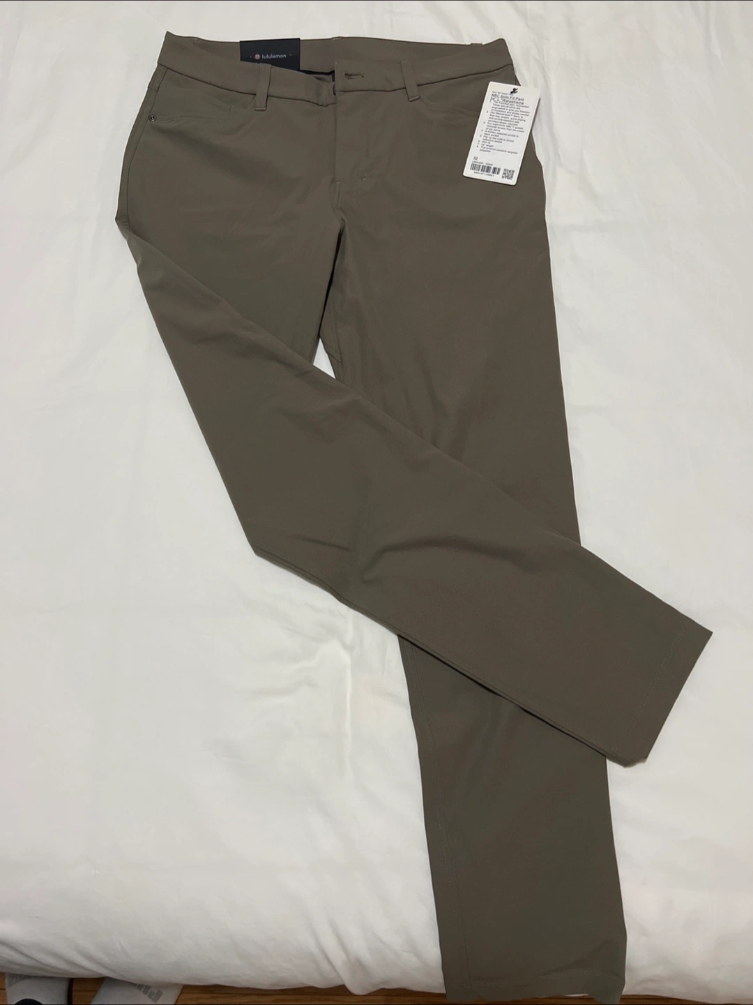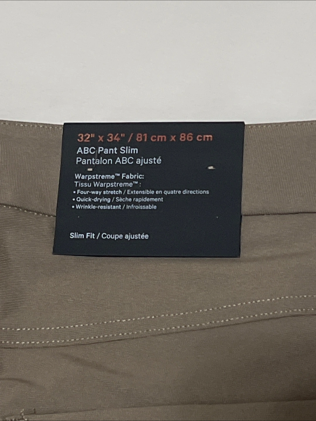 New with tags, never worn. Colour: Nomad Size: 32"x34". Slim fit. Four-way stretch, wrinkle-resistant, quick-drying. Five-pocket design. Hidden zipper pocket. Reflective details. Recycled polyester.