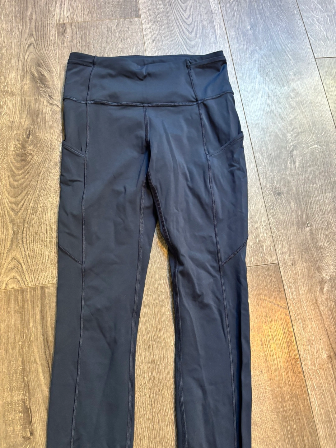 Lululemon navy blue leggings. High-rise waistband. 7/8 length. Side pockets. Excellent condition. firm price.