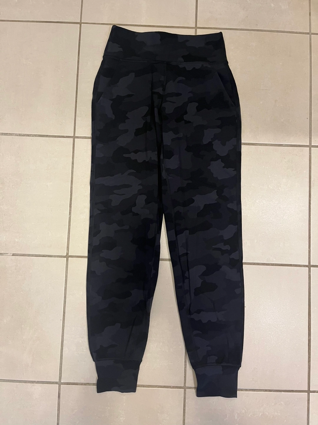 82Lululemon Align joggers in a cool camo pattern! They're a size 4 and made with a comfy blend of nylon and Lycra elastane. Perfect for workouts or just lounging around Worn gently and in great condition