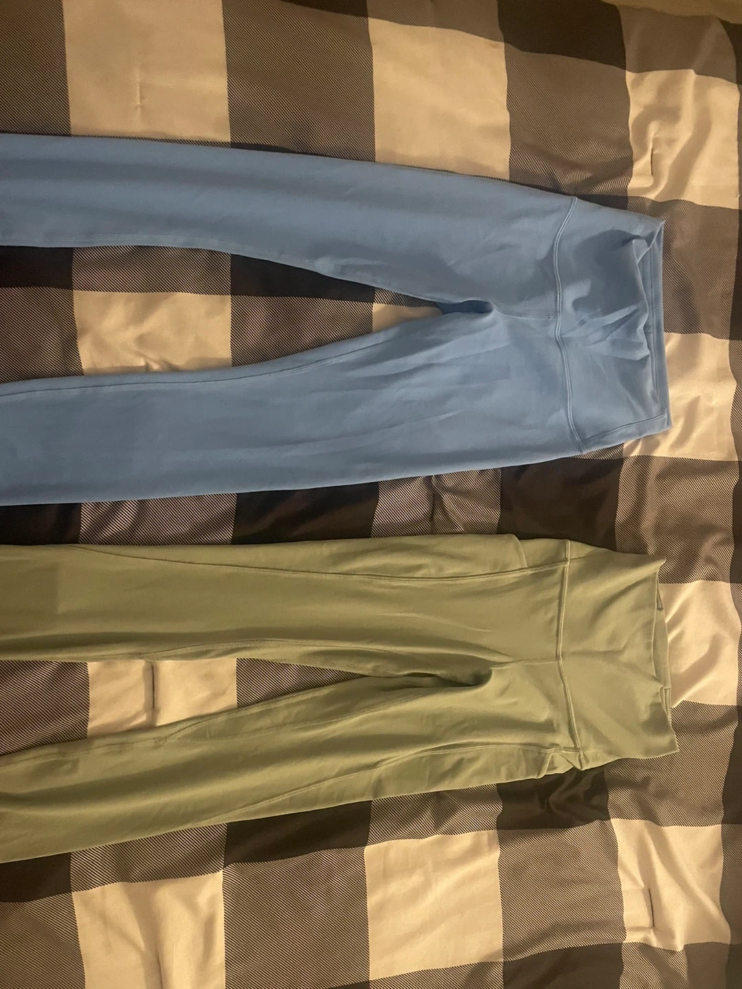 10Two pairs of Lululemon Align leggings for sale! One is a light blue, size 4, and the other is a light green, size 2. They are made of 81% nylon and 19% lycra elastane. Both are in great condition and super comfy! $25 each