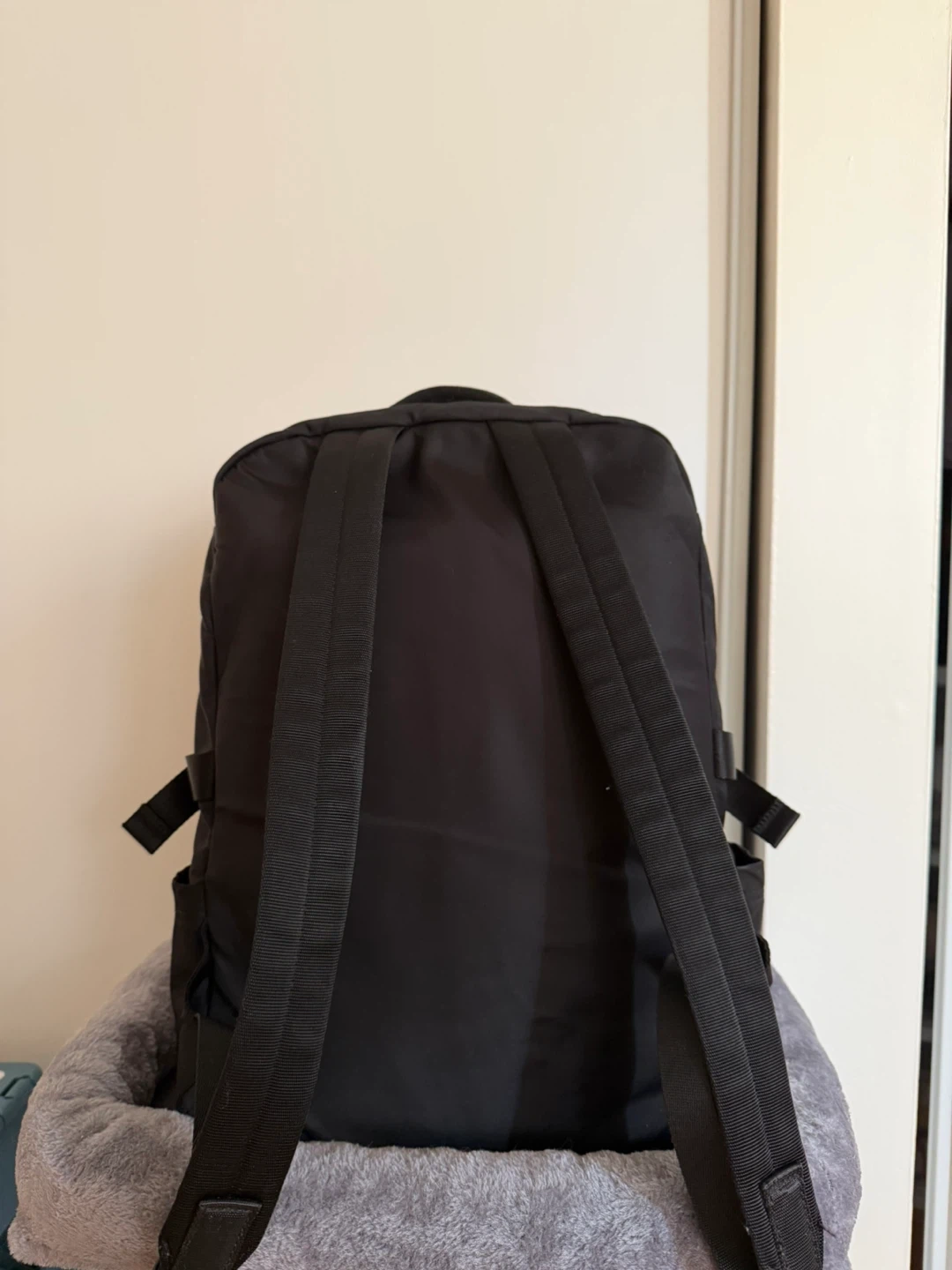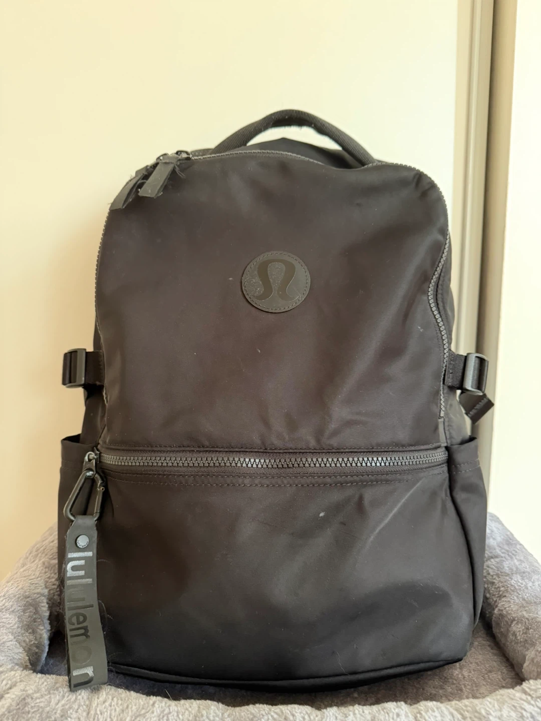 205Selling an used Lululemon New Crew Backpack 22L in black! This backpack is in functional condition and ready for a new home. It's perfect for carrying your essentials, whether you're heading to the gym, school, or just out and about.