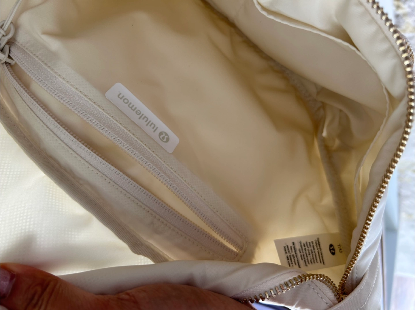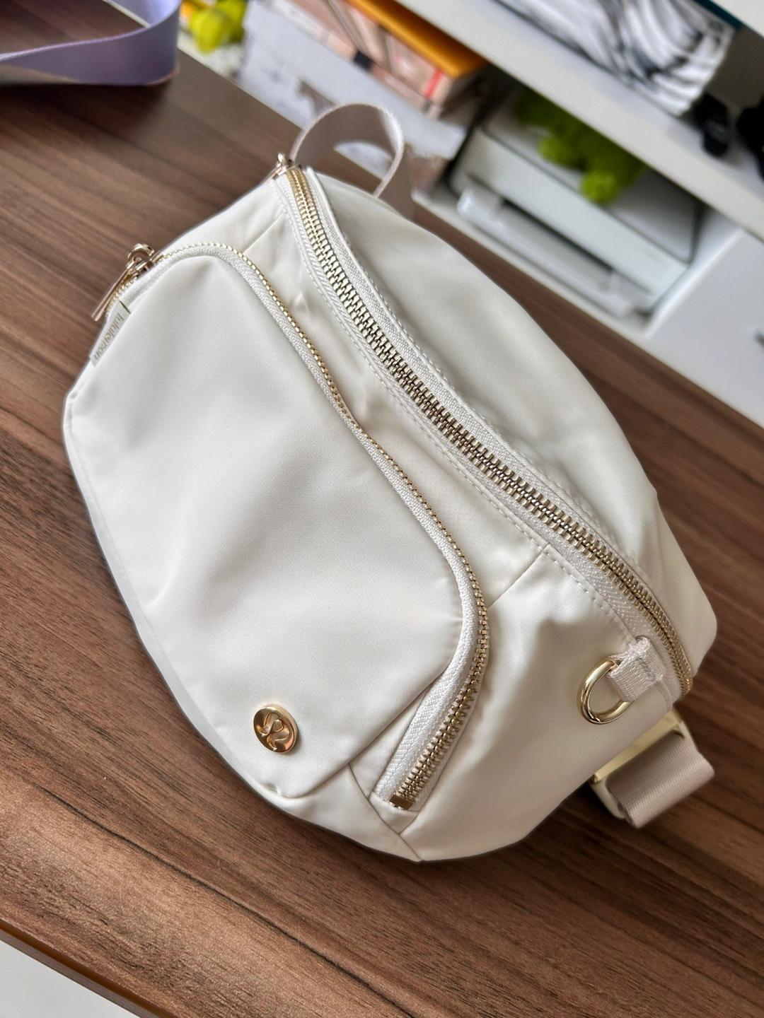Selling a Lululemon Bag in the beautiful White Opal colour! This bag is perfect for keeping your essentials close while you're on the go. It's lightweight and portable, making it ideal for everyday use or travel