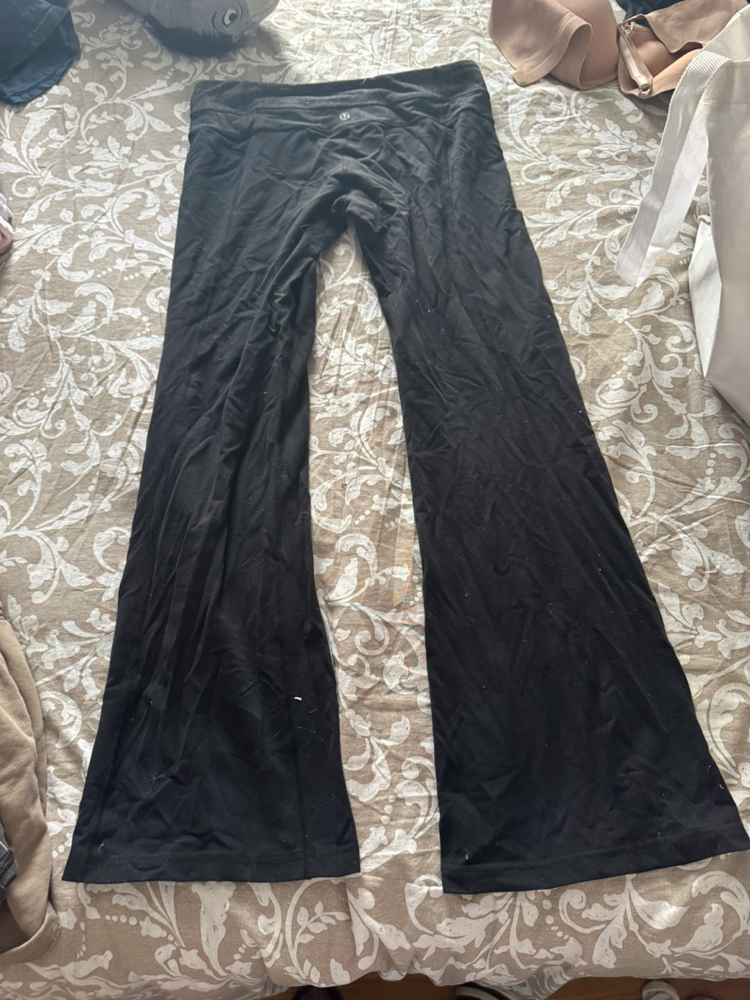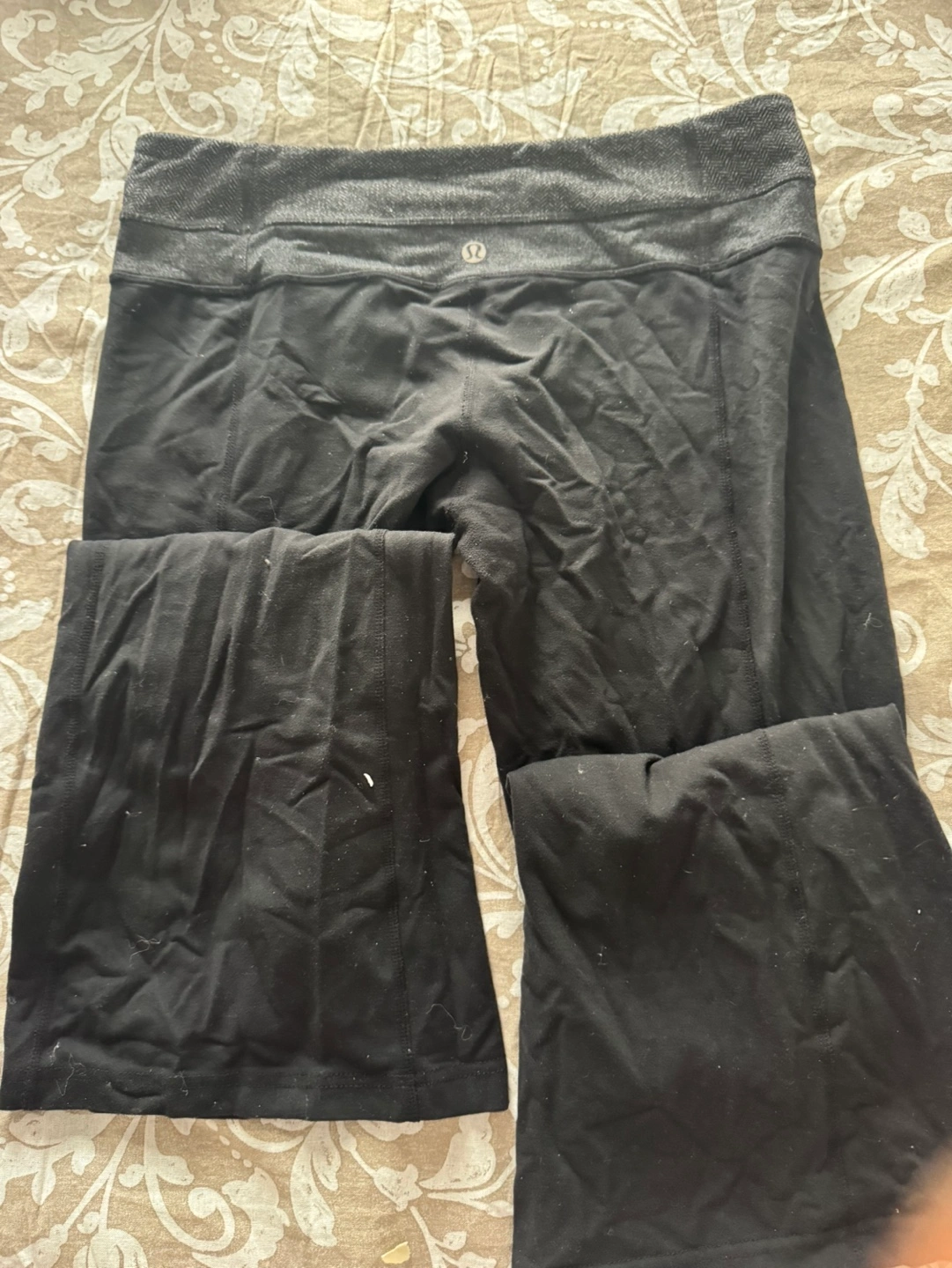 Lululemon black bootleg yoga pants. Size 8. Great for yoga or casual wear. Comfortable and stretchy material.