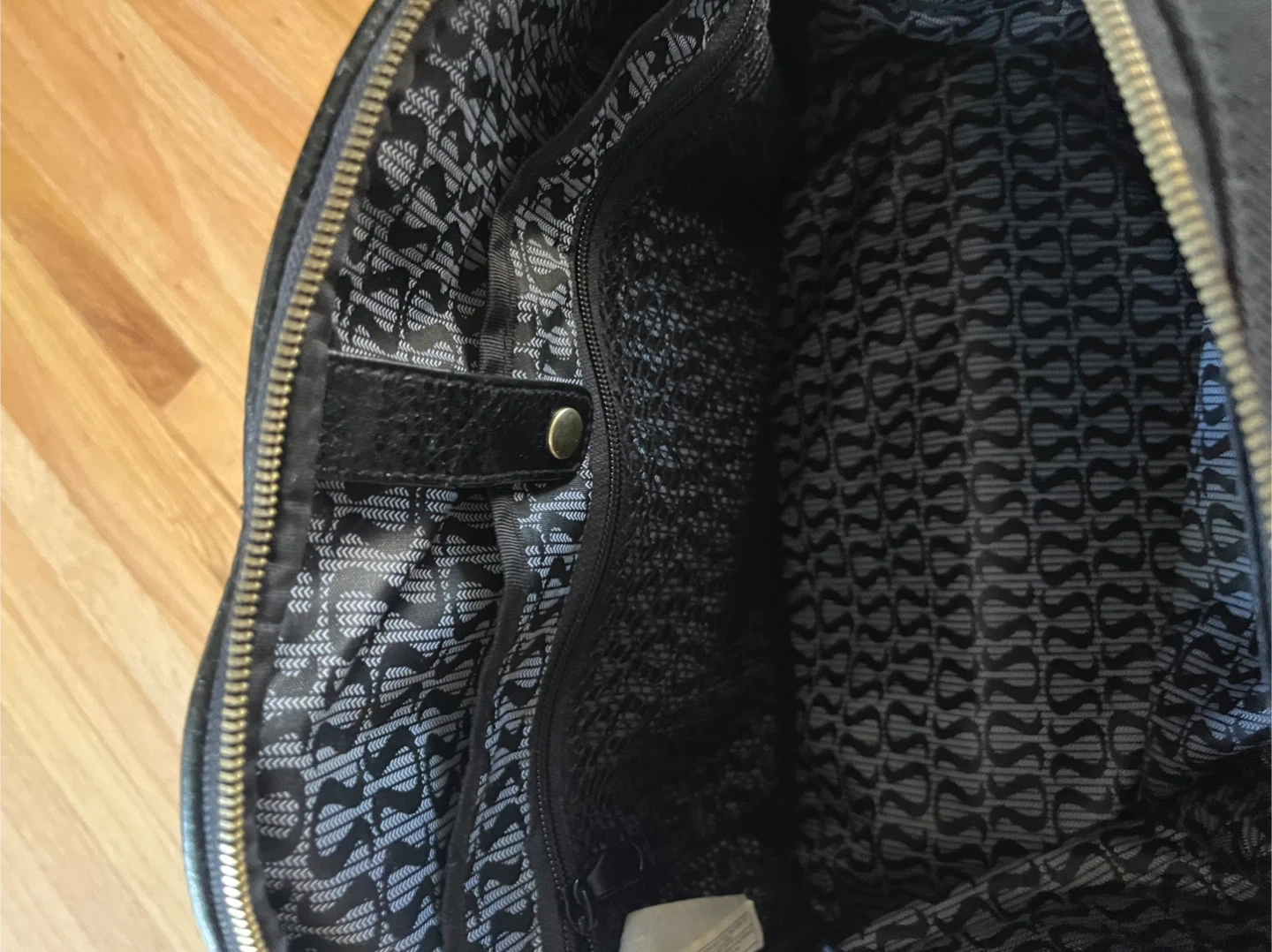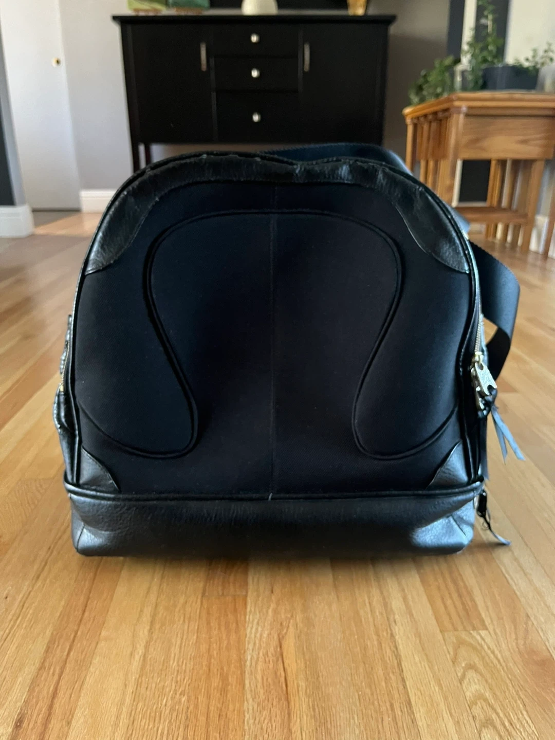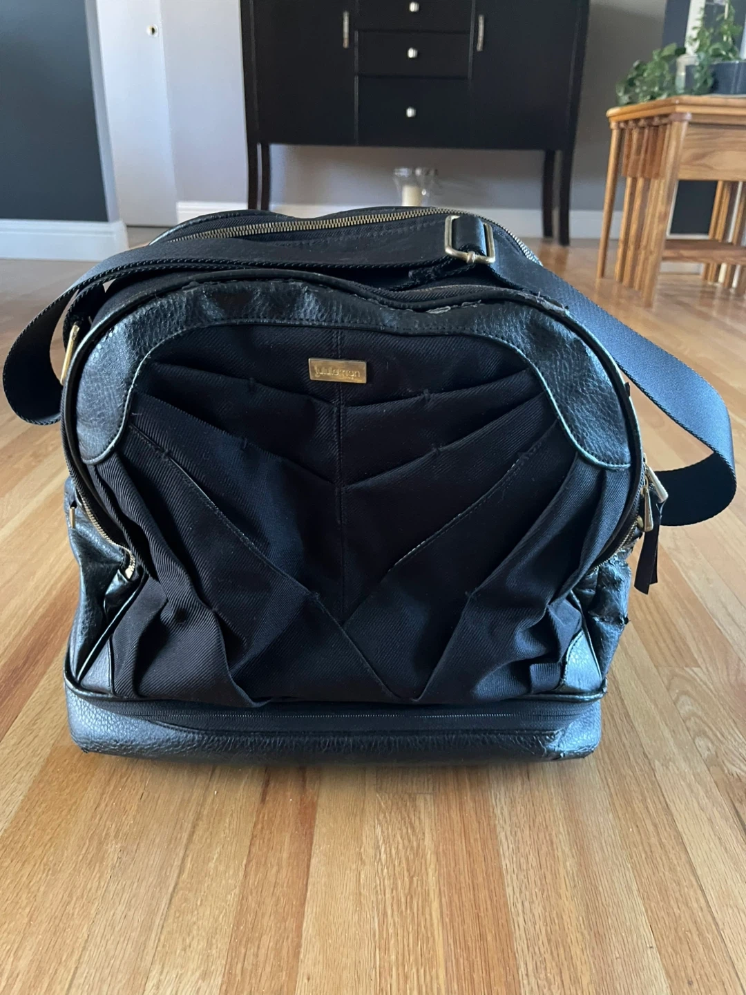 Selling a black vintage Lululemon bag with lots of space and pockets to keep everything organized. Showing some wear on edges but inside compartments in excellent condition.