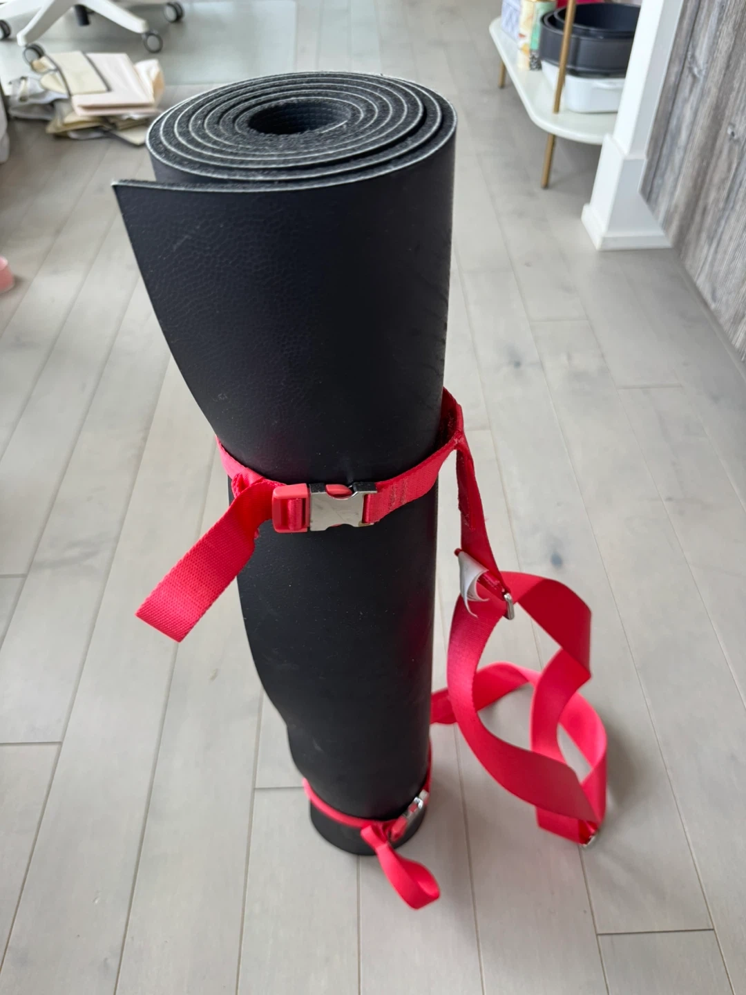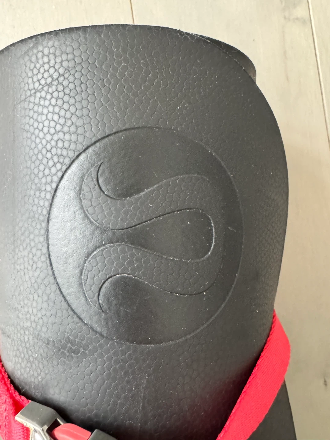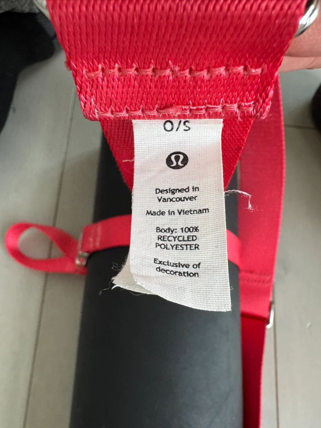Selling a Lululemon yoga mat in black! It comes with a handy Lululemon red carrying strap. The strap is one size (O/S) and made of 100% recycled polyester. Perfect for your yoga sessions!
